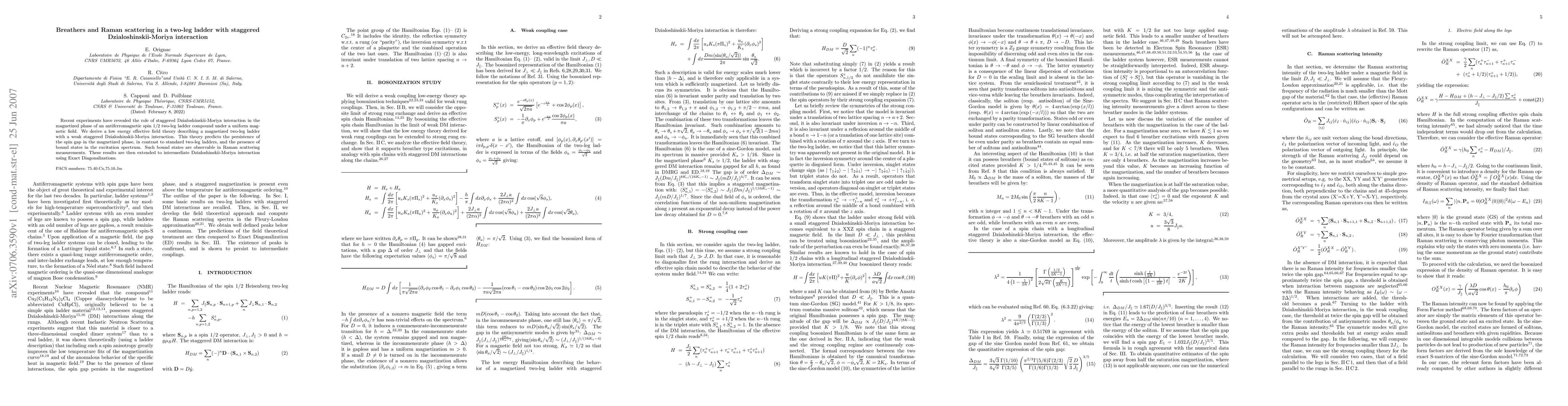This paper explores the effects of staggered Dzialoshinskii-Moriya interaction in a two-leg ladder system, predicting a spin gap and bound states in the excitation spectrum observable via Raman scattering, and extending these findings through exact diagonalizations.
