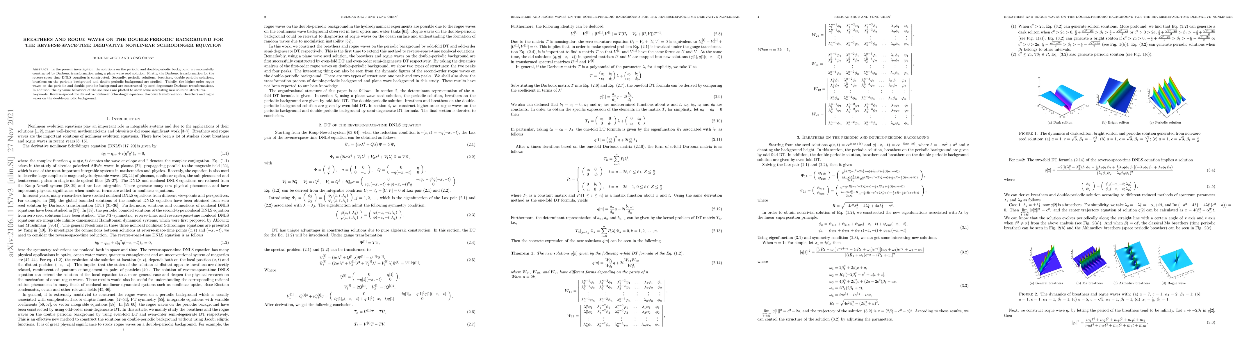 This paper constructs solutions for the reverse-space-time derivative nonlinear Schrödinger equation using Darboux transformation, including periodic, breathers, and rogue waves on both periodic and double-periodic backgrounds. Dynamic behaviors and new solution structures are illustrated through plots.