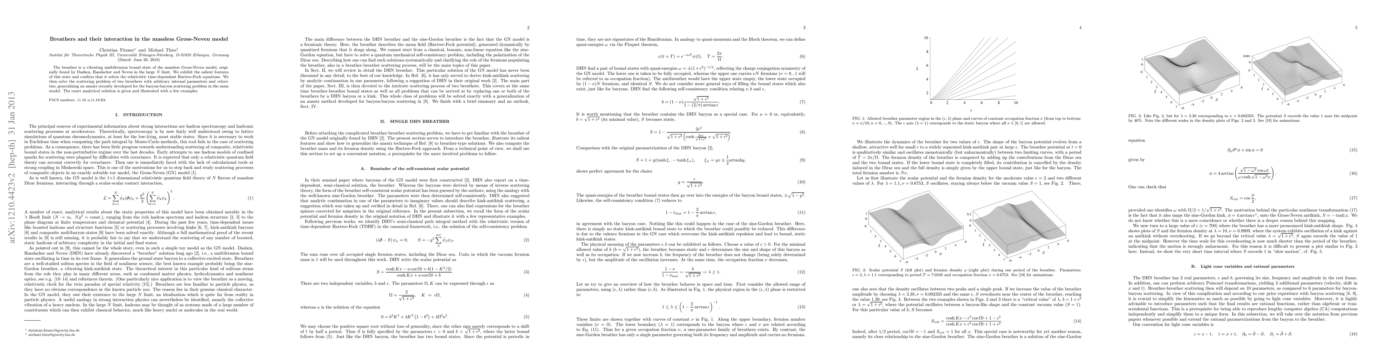 This paper investigates the breather, a multifermion bound state in the massless Gross-Neveu model, confirming its solution to relativistic time-dependent Hartree-Fock equations. It provides an exact analytical solution to the scattering problem of two breathers, generalizing previous methods for baryon-baryon interactions.