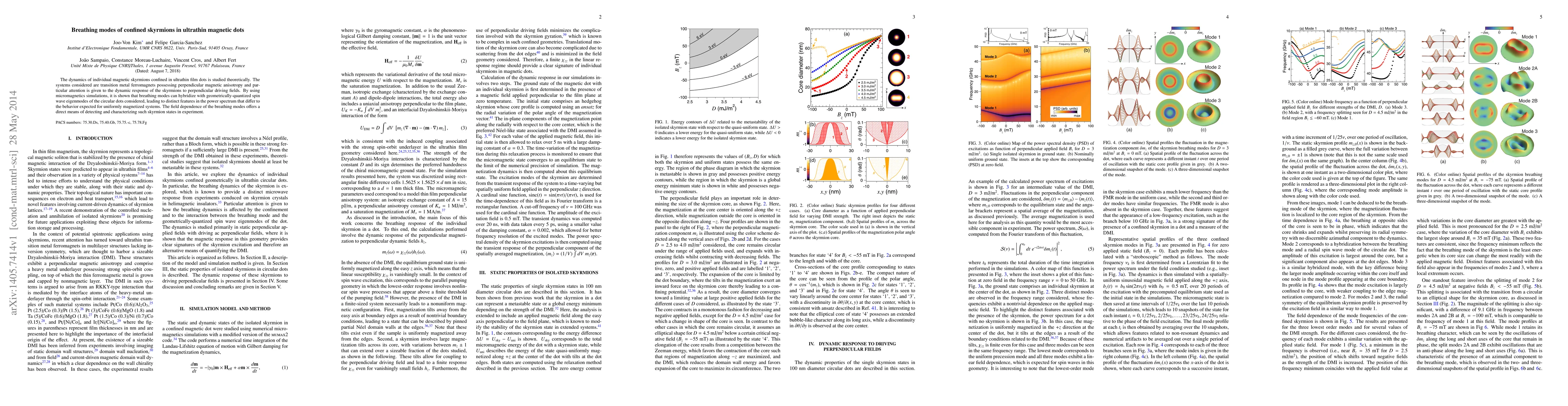 This paper investigates the dynamics of magnetic skyrmions in ultrathin film dots using micromagnetics simulations, revealing that breathing modes hybridize with spin wave eigenmodes, resulting in distinct power spectrum features. The study highlights the potential for detecting and characterizing skyrmion states via the field dependence of these breathing modes.