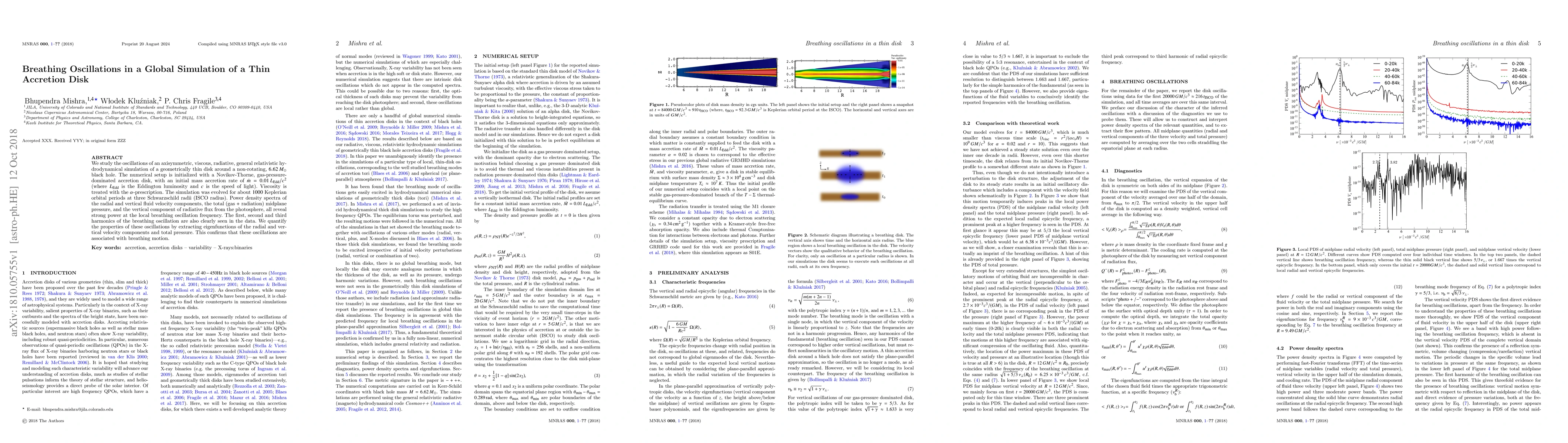 Researchers simulate a thin disk around a black hole and find strong evidence for 'breathing oscillations' in the disk's motion, which are associated with the disk's breathing motion.