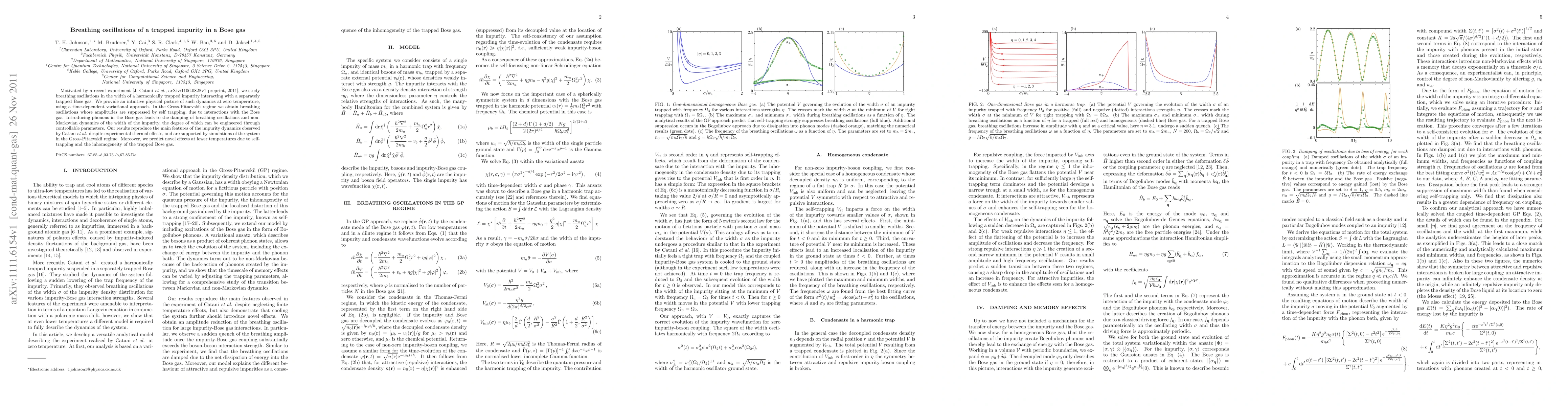 Motivated by a recent experiment [J. Catani et al., arXiv:1106.0828v1 preprint, 2011], we study breathing oscillations in the width of a harmonically trapped impurity interacting with a separately trapped Bose gas. We provide an intuitive physical picture of such dynamics at zero temperature, using a time-dependent variational approach. In the Gross-Pitaevskii regime we obtain breathing oscillations whose amplitudes are suppressed by self trapping, due to interactions with the Bose gas. Introducing phonons in the Bose gas leads to the damping of breathing oscillations and non-Markovian dynamics of the width of the impurity, the degree of which can be engineered through controllable parameters. Our results reproduce the main features of the impurity dynamics observed by Catani et al. despite experimental thermal effects, and are supported by simulations of the system in the Gross-Pitaevskii regime. Moreover, we predict novel effects at lower temperatures due to self-trapping and the inhomogeneity of the trapped Bose gas.