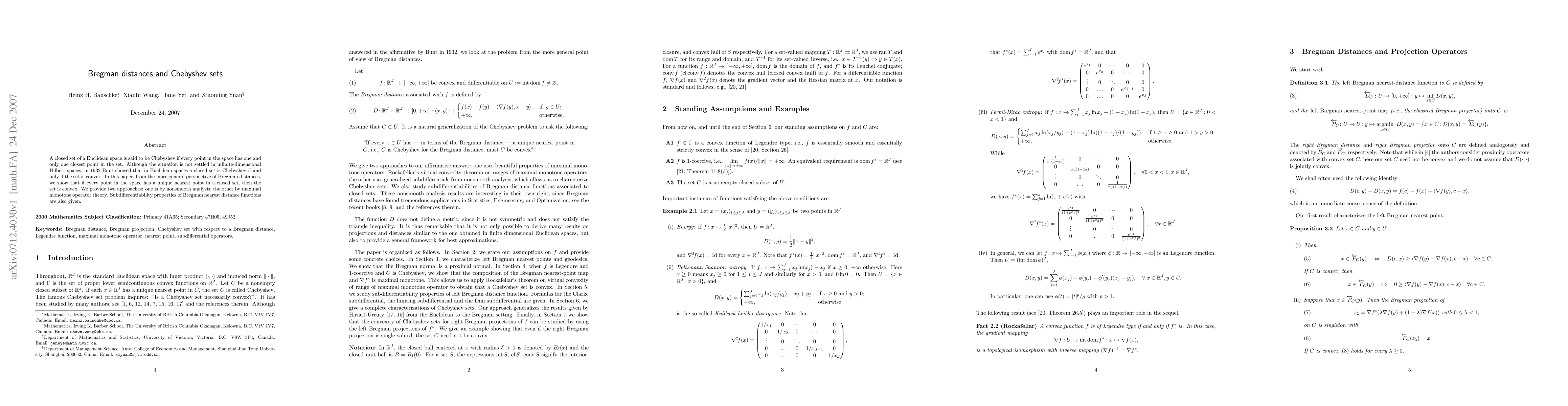 This paper demonstrates that a closed set in Euclidean space is convex if every point in the space has a unique nearest point in the set, using Bregman distances. It provides two proofs: one via nonsmooth analysis and another through maximal monotone operator theory, and explores subdifferentiability properties of Bregman nearest distance functions.