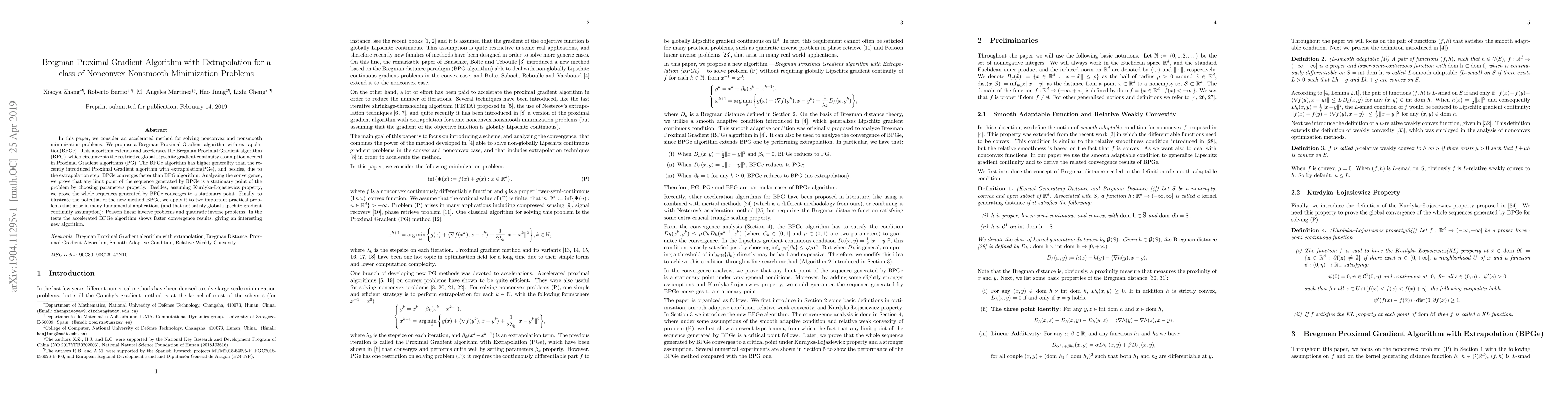 This paper proposes an accelerated Bregman Proximal Gradient algorithm with extrapolation (BPGe) for solving nonconvex and nonsmooth minimization problems, which extends the BPG algorithm by removing the global Lipschitz gradient continuity assumption. The BPGe algorithm converges faster than the standard BPG and is shown to converge to a stationary point under certain conditions.