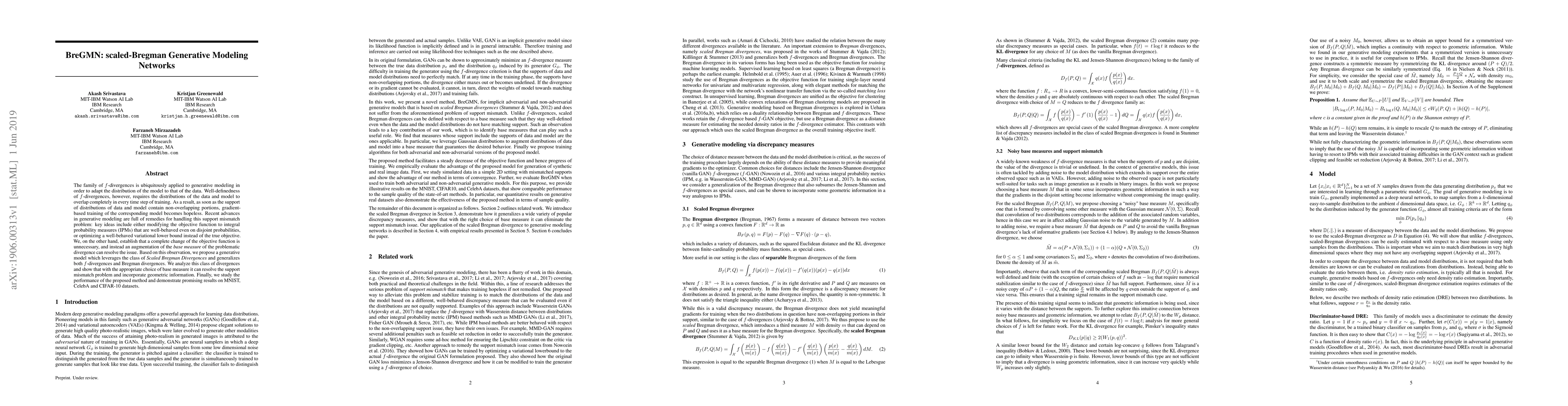 This paper proposes BreGMN, a generative modeling network that leverages scaled Bregman divergences to resolve the support mismatch problem in f-divergences, achieving promising results on MNIST, CelebA, and CIFAR-10 datasets.
