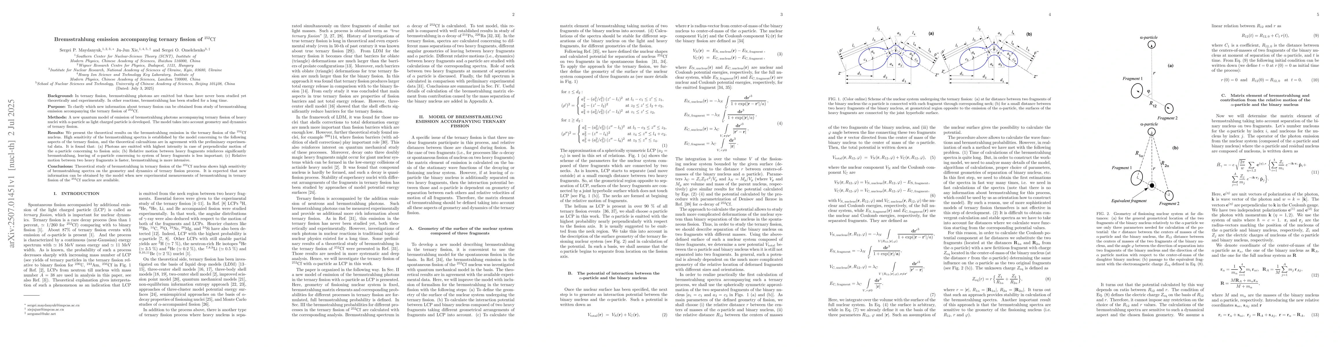 This paper presents a new quantum model to study bremsstrahlung photons emitted during ternary fission of isotope[252]{Cf}. The model reveals that bremsstrahlung intensity is highest when the alpha-particle moves perpendicular to the fission axis and with faster relative motion between heavy fragments. The findings suggest potential new insights into ternary fission dynamics with upcoming experimental validation.