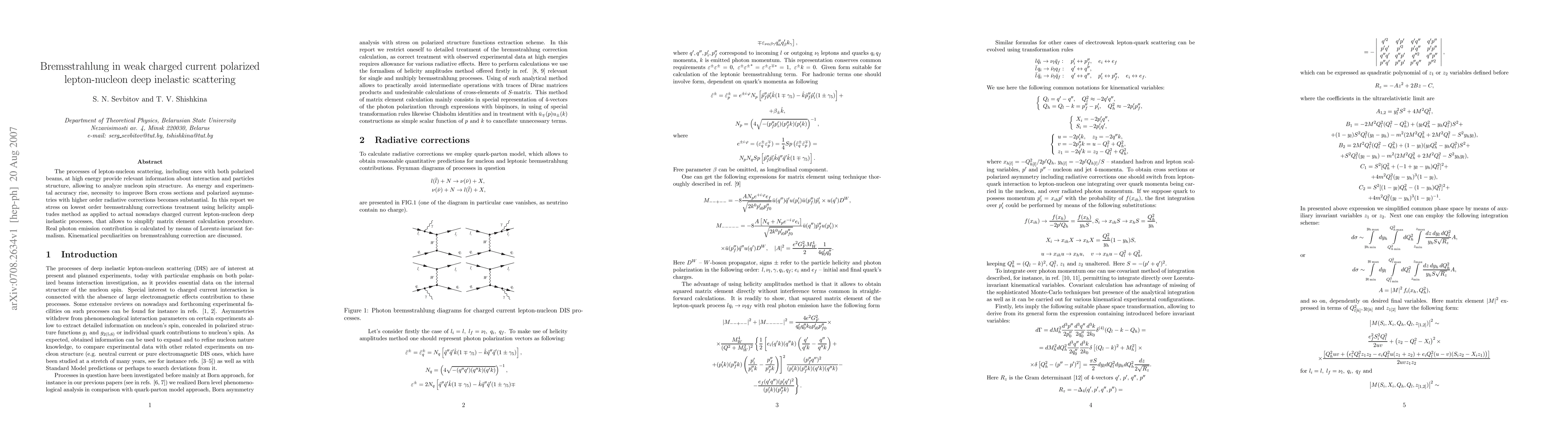 The paper presents a detailed calculation of bremsstrahlung corrections in weak charged current polarized lepton-nucleon deep inelastic scattering using helicity amplitudes, providing a more accurate description of these processes.