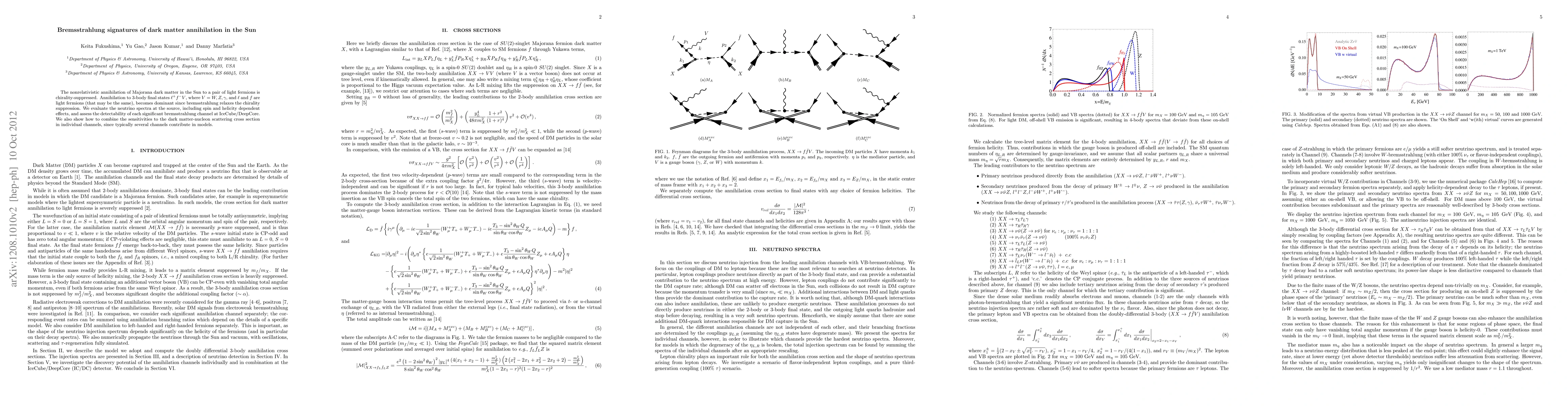 The nonrelativistic annihilation of Majorana dark matter in the Sun to a pair of light fermions is chirality-suppressed. Annihilation to 3-body final states $\ell^+f^-V$, where $V=W,Z,\gamma$, and $\ell$ and $f$ are light fermions (that may be the same), becomes dominant since bremsstrahlung relaxes the chirality suppression. We evaluate the neutrino spectra at the source, including spin and helicity dependent effects, and assess the detectability of each significant bremsstrahlung channel at IceCube/DeepCore. We also show how to combine the sensitivities to the dark matter-nucleon scattering cross section in individual channels, since typically several channels contribute in models.