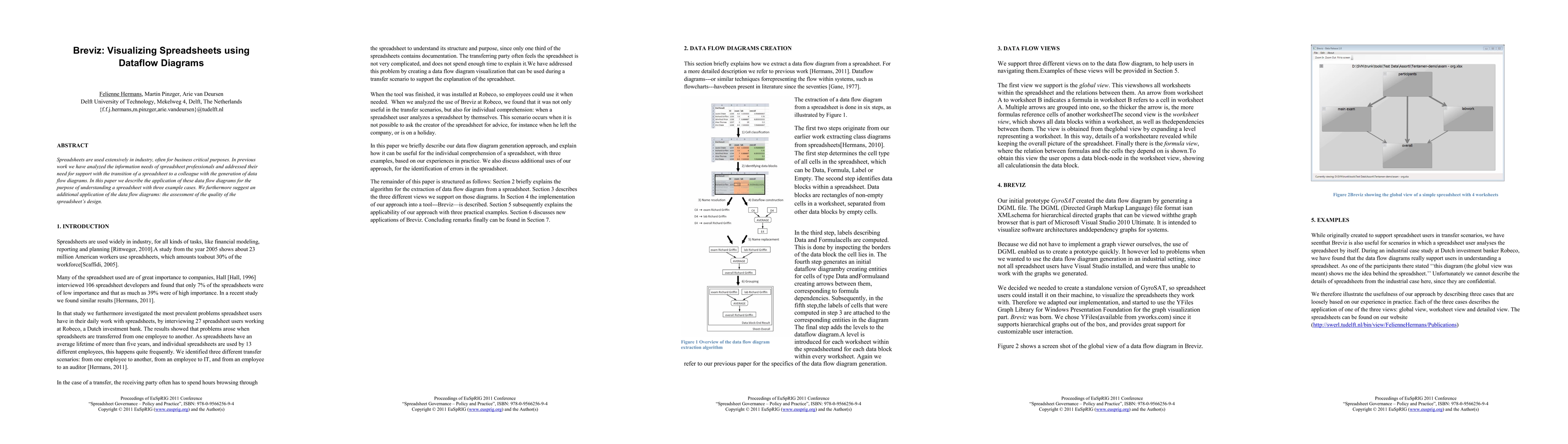 This paper introduces Breviz, a tool that creates data flow diagrams from spreadsheets to aid understanding and design assessment. It demonstrates this through three case studies, showcasing its utility for both collaboration and quality evaluation.