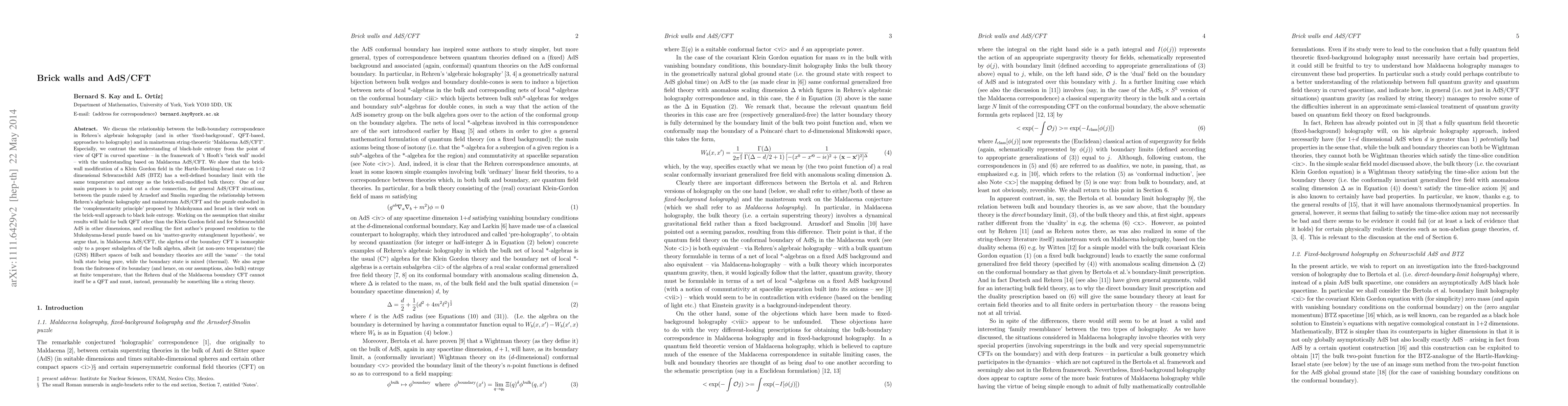 We discuss the relationship between the bulk-boundary correspondence in Rehren's algebraic holography (and in other 'fixed-background' approaches to holography) and in mainstream 'Maldacena AdS/CFT'. Especially, we contrast the understanding of black-hole entropy from the viewpoint of QFT in curved spacetime -- in the framework of 't Hooft's 'brick wall' model -- with the understanding based on Maldacena AdS/CFT. We show that the brick-wall modification of a Klein Gordon field in the Hartle-Hawking-Israel state on 1+2-Schwarzschild AdS (BTZ) has a well-defined boundary limit with the same temperature and entropy as the brick-wall-modified bulk theory. One of our main purposes is to point out a close connection, for general AdS/CFT situations, between the puzzle raised by Arnsdorf and Smolin regarding the relationship between Rehren's algebraic holography and mainstream AdS/CFT and the puzzle embodied in the 'correspondence principle' proposed by Mukohyama and Israel in their work on the brick-wall approach to black hole entropy. Working on the assumption that similar results will hold for bulk QFT other than the Klein Gordon field and for Schwarzschild AdS in other dimensions, and recalling the first author's proposed resolution to the Mukohyama-Israel puzzle based on his 'matter-gravity entanglement hypothesis', we argue that, in Maldacena AdS/CFT, the algebra of the boundary CFT is isomorphic only to a proper subalgebra of the bulk algebra, albeit (at non-zero temperature) the (GNS) Hilbert spaces of bulk and boundary theories are still the 'same' -- the total bulk state being pure, while the boundary state is mixed (thermal). We also argue from the finiteness of its boundary (and hence, on our assumptions, also bulk) entropy at finite temperature, that the Rehren dual of the Maldacena boundary CFT cannot itself be a QFT and must, instead, presumably be something like a string theory.