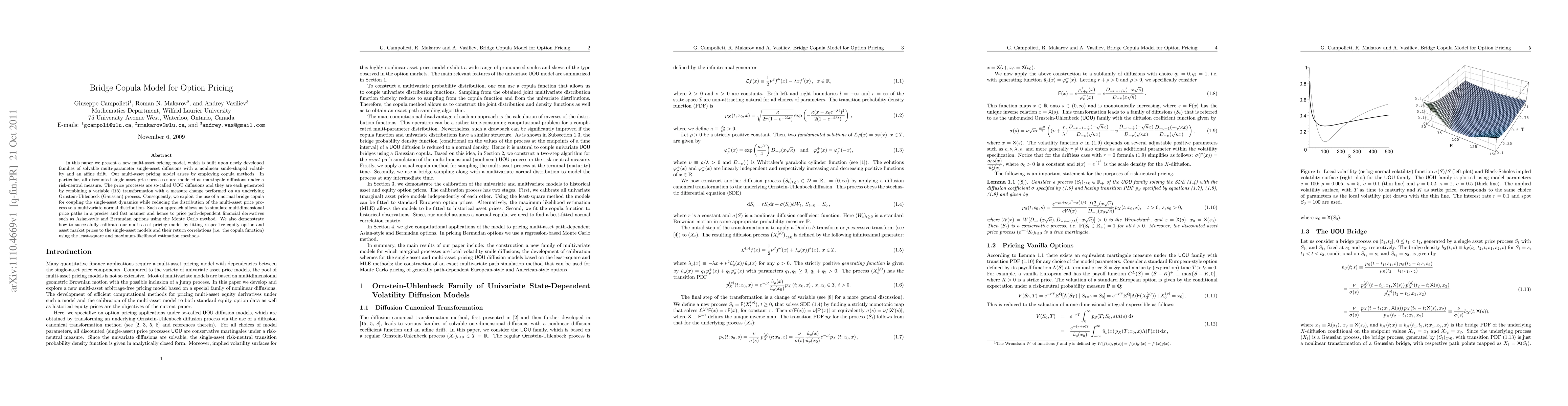 A new multi-asset pricing model is proposed, combining a bridge copula method with local volatility smile regularity diffusion models.