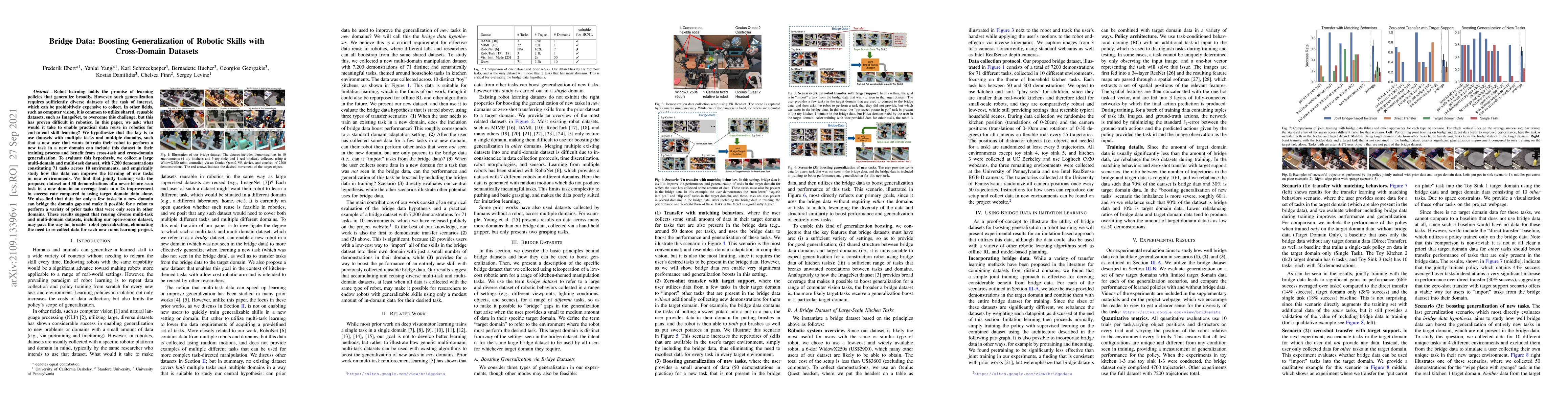 Robot learning holds the promise of learning policies that generalize broadly. However, such generalization requires sufficiently diverse datasets of the task of interest, which can be prohibitively expensive to collect. In other fields, such as computer vision, it is common to utilize shared, reusable datasets, such as ImageNet, to overcome this challenge, but this has proven difficult in robotics. In this paper, we ask: what would it take to enable practical data reuse in robotics for end-to-end skill learning? We hypothesize that the key is to use datasets with multiple tasks and multiple domains, such that a new user that wants to train their robot to perform a new task in a new domain can include this dataset in their training process and benefit from cross-task and cross-domain generalization. To evaluate this hypothesis, we collect a large multi-domain and multi-task dataset, with 7,200 demonstrations constituting 71 tasks across 10 environments, and empirically study how this data can improve the learning of new tasks in new environments. We find that jointly training with the proposed dataset and 50 demonstrations of a never-before-seen task in a new domain on average leads to a 2x improvement in success rate compared to using target domain data alone. We also find that data for only a few tasks in a new domain can bridge the domain gap and make it possible for a robot to perform a variety of prior tasks that were only seen in other domains. These results suggest that reusing diverse multi-task and multi-domain datasets, including our open-source dataset, may pave the way for broader robot generalization, eliminating the need to re-collect data for each new robot learning project.