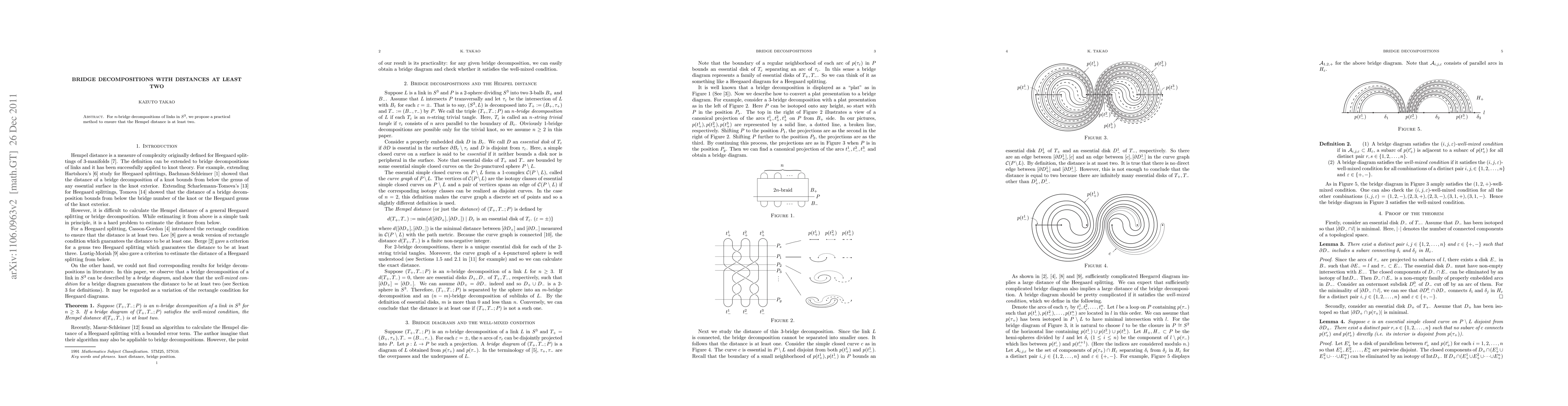 For n-bridge decompositions of links in S^3, we propose a practical method to ensure that the Hempel distance is at least two.