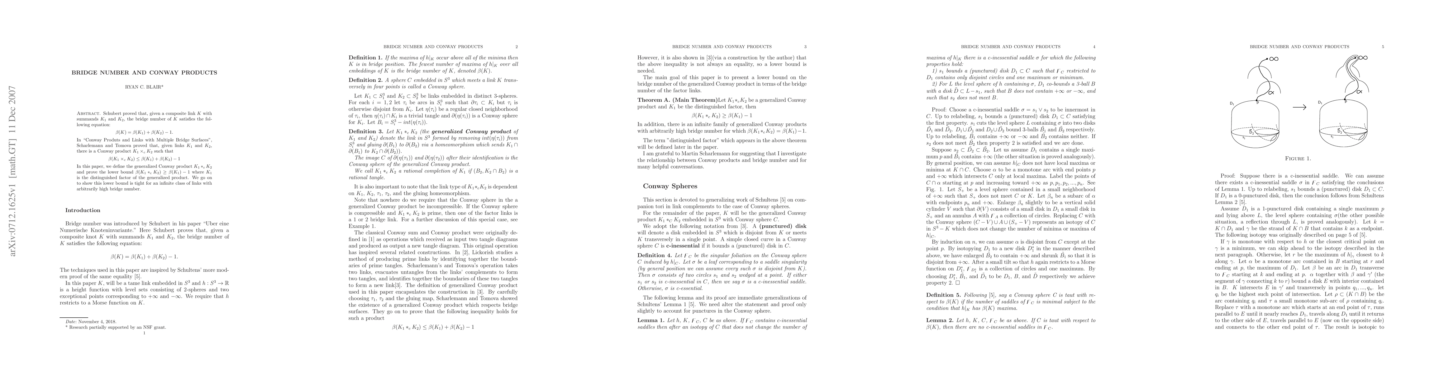 Schubert proved that, given a composite link $K$ with summands $K_{1}$ and $K_{2}$, the bridge number of $K$ satisfies the following equation: $$\beta(K)=\beta(K_{1})+\beta(K_{2})-1.$$ In ``Conway Produts and Links with Multiple Bridge Surfaces", Scharlemann and Tomova proved that, given links $K_{1}$ and $K_{2}$, there is a Conway product $K_{1}\times_{c}K_{2}$ such that $$\beta(K_{1}\times_{c} K_{2}) \leq \beta(K_{1}) + \beta(K_{2}) - 1$$ In this paper, we define the generalized Conway product $K_{1}\ast_{c}K_{2}$ and prove the lower bound $\beta(K_{1}\ast_{c}K_{2}) \geq \beta(K_{1})-1$ where $K_{1}$ is the distinguished factor of the generalized product. We go on to show this lower bound is tight for an infinite class of links with arbitrarily high bridge number.