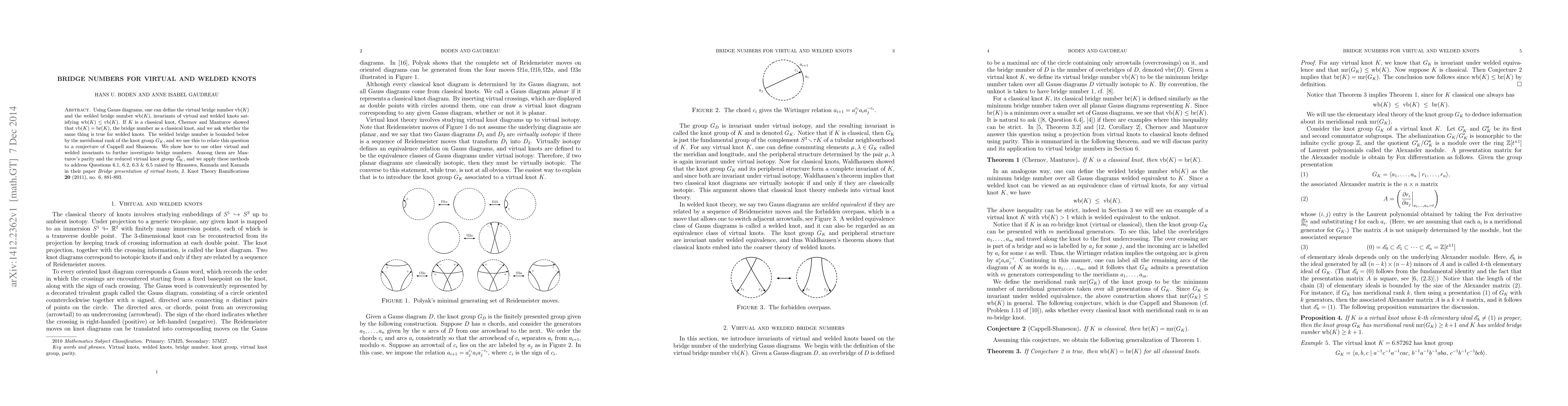 Using Gauss diagrams, one can define the virtual bridge number ${\rm vb}(K)$ and the welded bridge number ${\rm wb}(K),$ invariants of virtual and welded knots with ${\rm wb}(K) \leq {\rm vb}(K).$ If $K$ is a classical knot, Chernov and Manturov showed that ${\rm vb}(K) = {\rm br}(K),$ the bridge number as a classical knot, and we ask whether the same thing is true for welded knots. The welded bridge number is bounded below by the meridional rank of the knot group $G_K$, and we use this to relate this question to a conjecture of Cappell and Shaneson. We show how to use other virtual and welded invariants to further investigate bridge numbers. Among them are Manturov's parity and the reduced virtual knot group $\overline{G}_K$, and we apply these methods to address Questions 6.1, 6.2, 6.3 and 6.5 raised by Hirasawa, Kamada and Kamada in their paper "Bridge presentation of virtual knots," J. Knot Theory Ramifications 20 (2011), no. 6, 881--893.