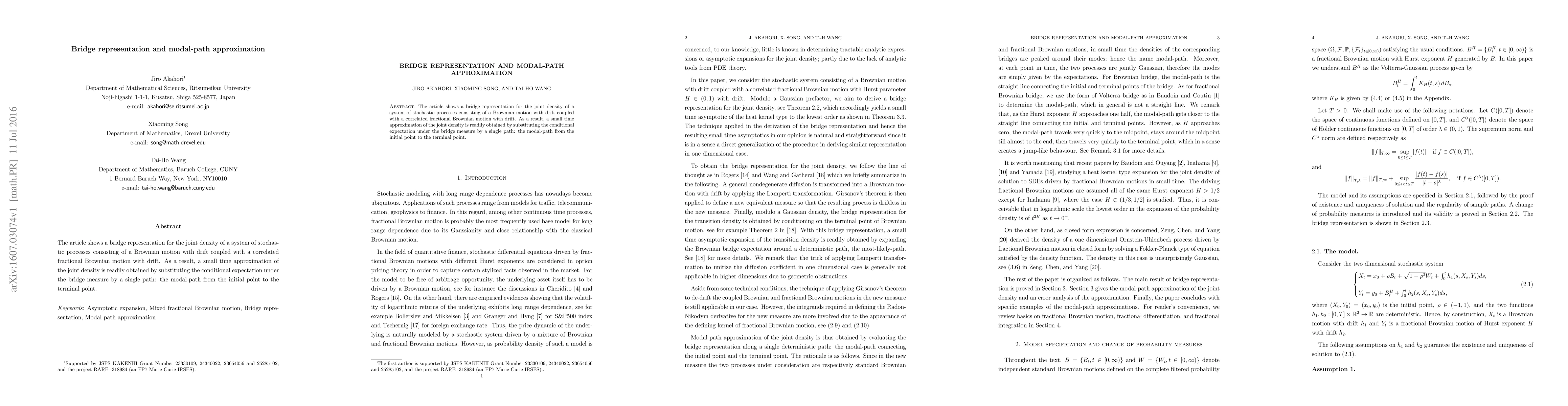 Researchers developed a bridge representation for a system of stochastic processes, allowing for an approximation of their joint density using just the most likely path between initial and terminal points.