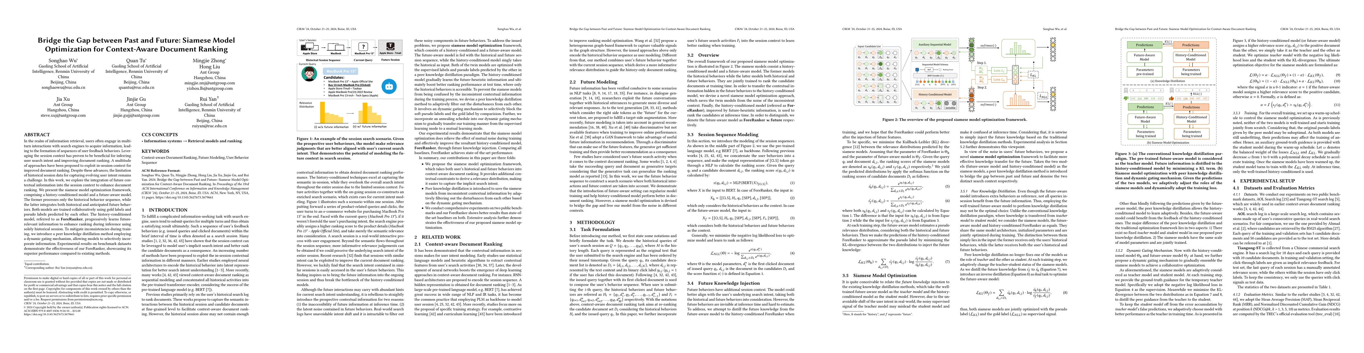 This work stands out by bridging the gap between past and future context in document ranking, utilizing a collaborative training approach with history-conditioned and future-aware models.
