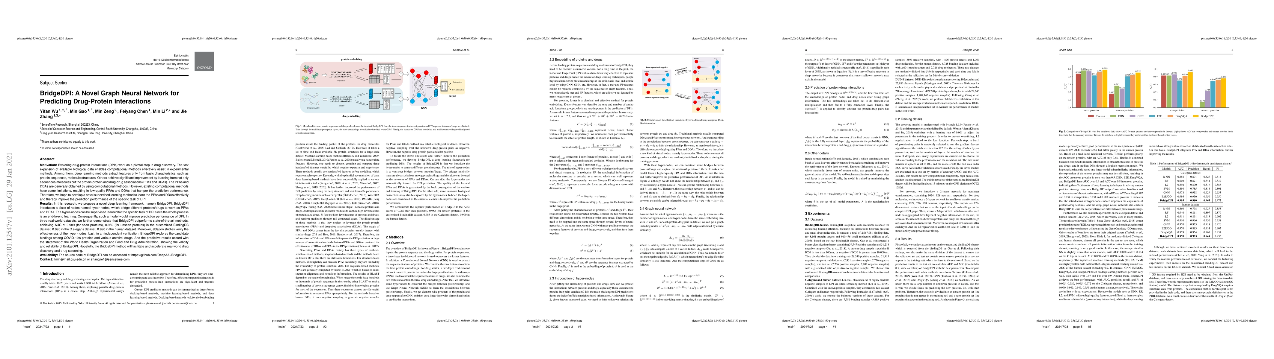 Motivation: Exploring drug-protein interactions (DPIs) work as a pivotal step in drug discovery. The fast expansion of available biological data enables computational methods effectively assist in experimental methods. Among them, deep learning methods extract features only from basic characteristics, such as protein sequences, molecule structures. Others achieve significant improvement by learning from not only sequences/molecules but the protein-protein and drug-drug associations (PPAs and DDAs). The PPAs and DDAs are generally obtained by using computational methods. However, existing computational methods have some limitations, resulting in low-quality PPAs and DDAs that hamper the prediction performance. Therefore, we hope to develop a novel supervised learning method to learn the PPAs and DDAs effectively and thereby improve the prediction performance of the specific task of DPI. Results: In this research, we propose a novel deep learning framework, namely BridgeDPI. BridgeDPI introduces a class of nodes named hyper-nodes, which bridge different proteins/drugs to work as PPAs and DDAs. The hyper-nodes can be supervised learned for the specific task of DPI since the whole process is an end-to-end learning. Consequently, such a model would improve prediction performance of DPI. In three real-world datasets, we further demonstrate that BridgeDPI outperforms state-of-the-art methods. Moreover, ablation studies verify the effectiveness of the hyper-nodes. Last, in an independent verification, BridgeDPI explores the candidate bindings among COVID-19's proteins and various antiviral drugs. And the predictive results accord with the statement of the World Health Organization and Food and Drug Administration, showing the validity and reliability of BridgeDPI.
