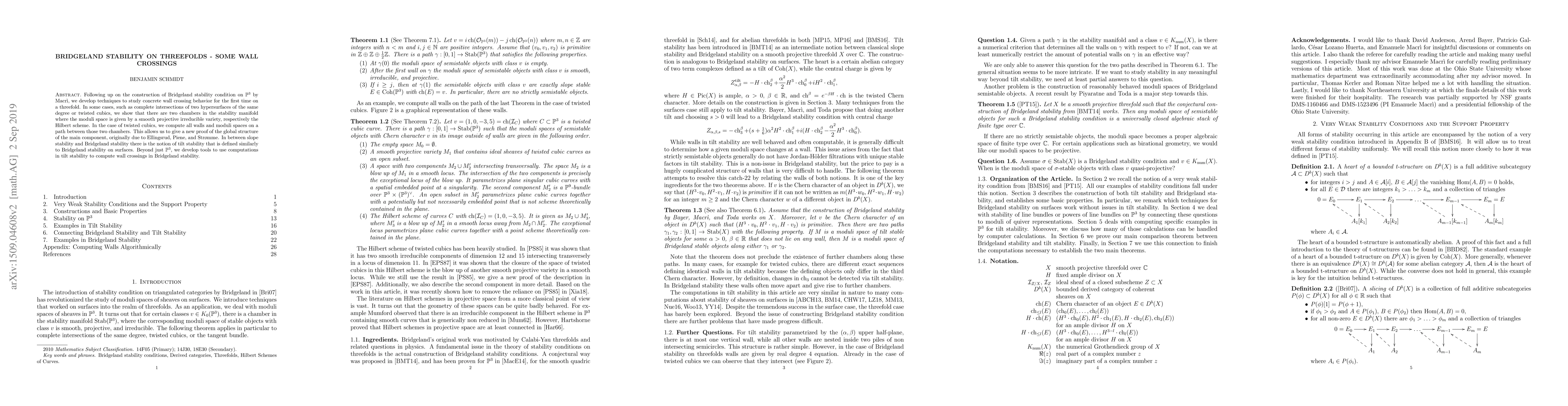 This paper explores the wall crossing behavior of Bridgeland stability on $\mathbb{P}^3$, demonstrating techniques for threefolds. It identifies two stability chambers for specific complete intersections and twisted cubics, providing new insights into their moduli spaces and confirming the global structure of the main component.