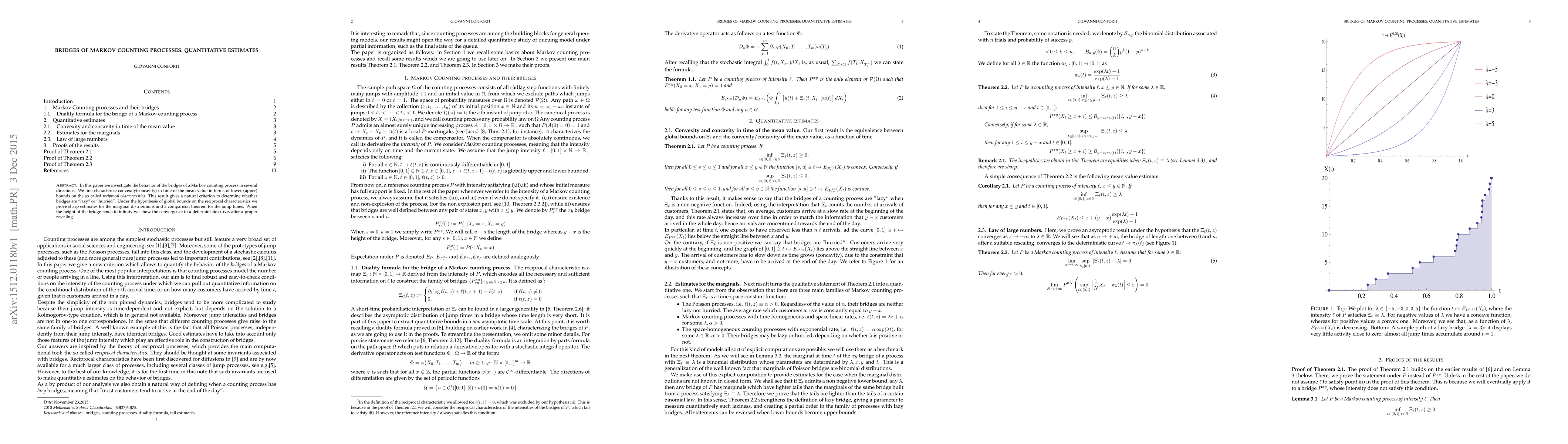 This paper examines the behavior of Markov counting process bridges, providing quantitative estimates for their convexity/concavity in time. It establishes criteria for determining "lazy" or "hurried" bridges based on reciprocal characteristics and proves sharp estimates for marginal distributions and a comparison theorem for jump times under global bounds.