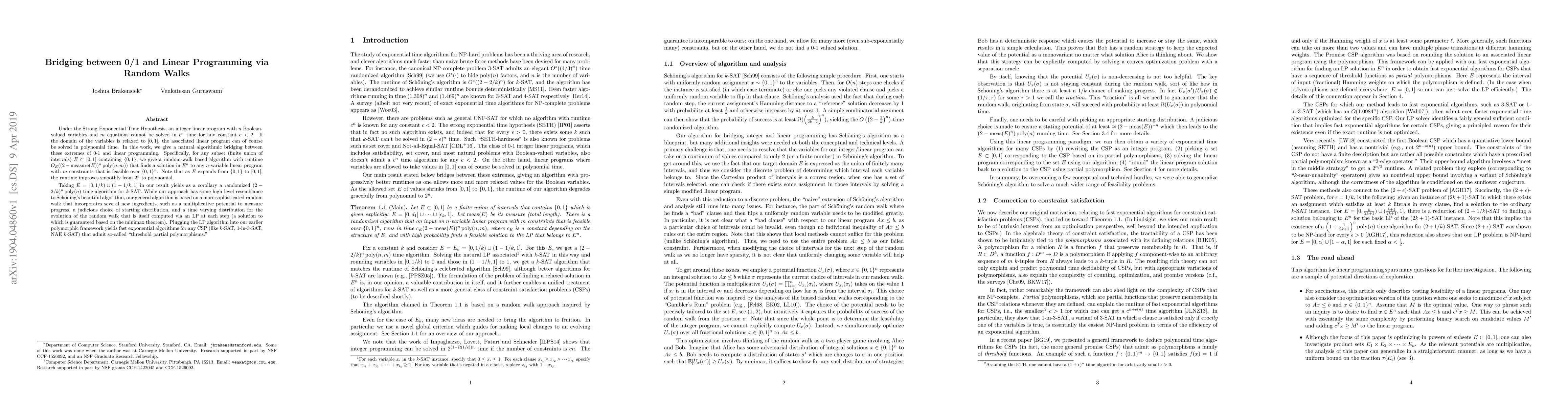 Under the Strong Exponential Time Hypothesis, an integer linear program with $n$ Boolean-valued variables and $m$ equations cannot be solved in $c^n$ time for any constant $c < 2$. If the domain of the variables is relaxed to $[0,1]$, the associated linear program can of course be solved in polynomial time. In this work, we give a natural algorithmic bridging between these extremes of $0$-$1$ and linear programming. Specifically, for any subset (finite union of intervals) $E \subset [0,1]$ containing $\{0,1\}$, we give a random-walk based algorithm with runtime $O_E((2-\text{measure}(E))^n\text{poly}(n,m))$ that finds a solution in $E^n$ to any $n$-variable linear program with $m$ constraints that is feasible over $\{0,1\}^n$. Note that as $E$ expands from $\{0,1\}$ to $[0,1]$, the runtime improves smoothly from $2^n$ to polynomial. Taking $E = [0,1/k) \cup (1-1/k,1]$ in our result yields as a corollary a randomized $(2-2/k)^{n}\text{poly}(n)$ time algorithm for $k$-SAT. While our approach has some high level resemblance to Sch\"{o}ning's beautiful algorithm, our general algorithm is based on a more sophisticated random walk that incorporates several new ingredients, such as a multiplicative potential to measure progress, a judicious choice of starting distribution, and a time varying distribution for the evolution of the random walk that is itself computed via an LP at each step (a solution to which is guaranteed based on the minimax theorem). Plugging the LP algorithm into our earlier polymorphic framework yields fast exponential algorithms for any CSP (like $k$-SAT, $1$-in-$3$-SAT, NAE $k$-SAT) that admit so-called `threshold partial polymorphisms.'