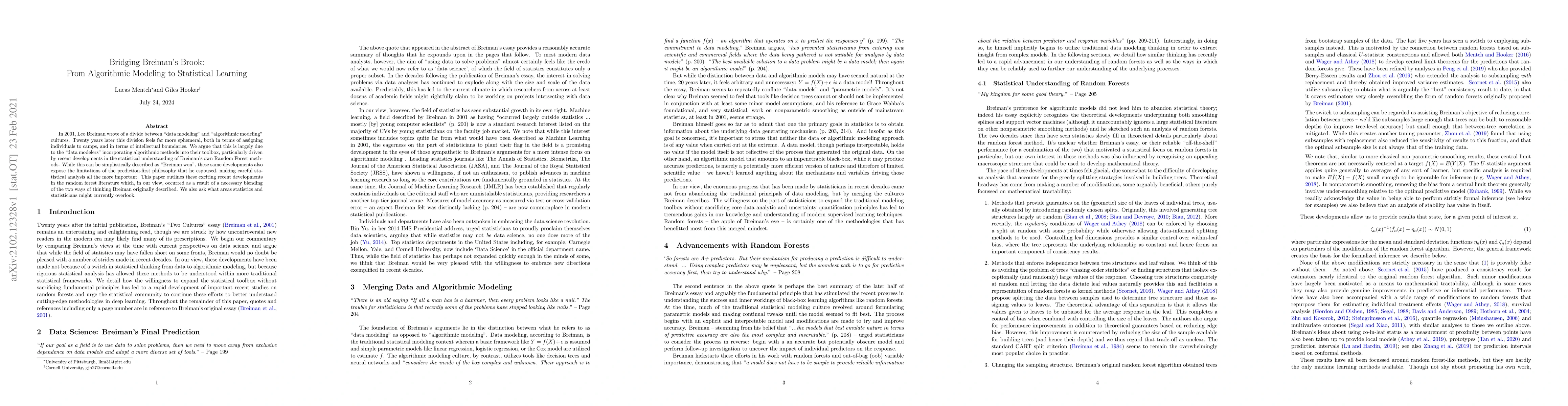 In 2001, Leo Breiman wrote of a divide between "data modeling" and "algorithmic modeling" cultures. Twenty years later this division feels far more ephemeral, both in terms of assigning individuals to camps, and in terms of intellectual boundaries. We argue that this is largely due to the "data modelers" incorporating algorithmic methods into their toolbox, particularly driven by recent developments in the statistical understanding of Breiman's own Random Forest methods. While this can be simplistically described as "Breiman won", these same developments also expose the limitations of the prediction-first philosophy that he espoused, making careful statistical analysis all the more important. This paper outlines these exciting recent developments in the random forest literature which, in our view, occurred as a result of a necessary blending of the two ways of thinking Breiman originally described. We also ask what areas statistics and statisticians might currently overlook.