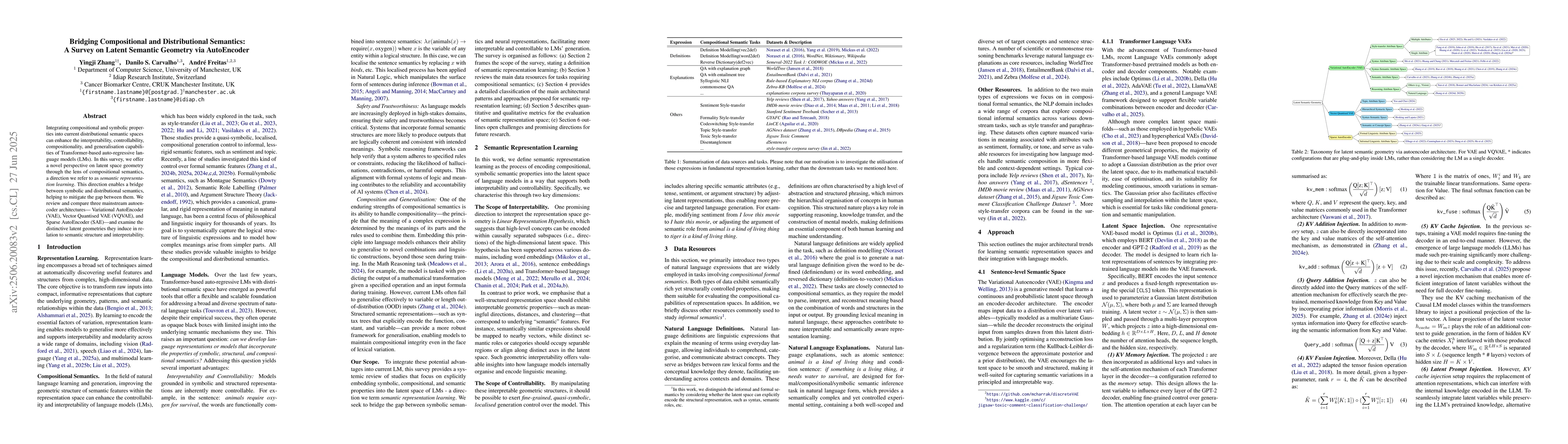 Integrating compositional and symbolic properties into current distributional semantic spaces can enhance the interpretability, controllability, compositionality, and generalisation capabilities of Transformer-based auto-regressive language models (LMs). In this survey, we offer a novel perspective on latent space geometry through the lens of compositional semantics, a direction we refer to as \textit{semantic representation learning}. This direction enables a bridge between symbolic and distributional semantics, helping to mitigate the gap between them. We review and compare three mainstream autoencoder architectures-Variational AutoEncoder (VAE), Vector Quantised VAE (VQVAE), and Sparse AutoEncoder (SAE)-and examine the distinctive latent geometries they induce in relation to semantic structure and interpretability.