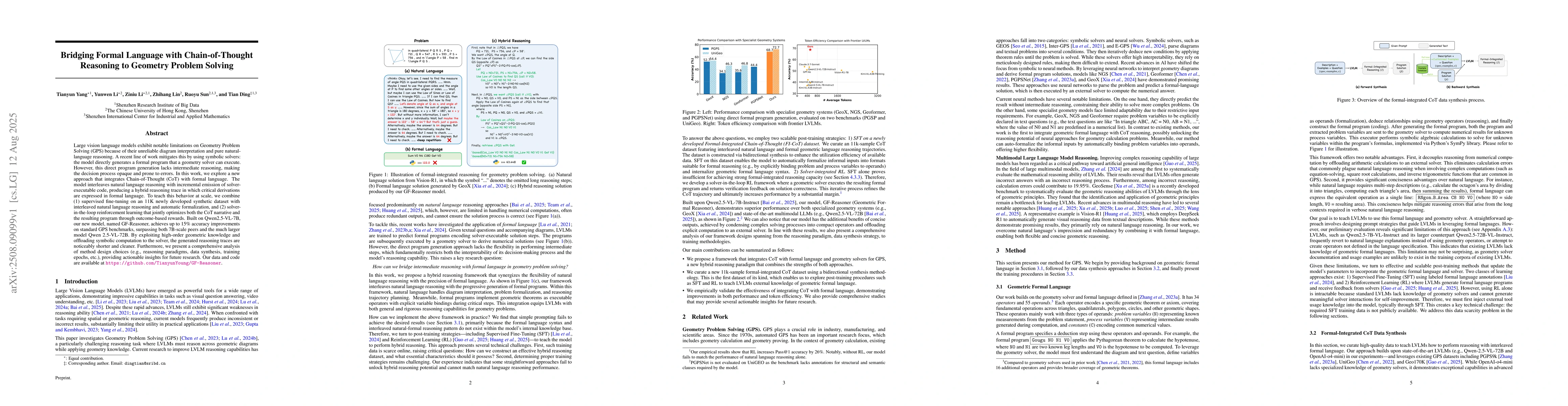 The research introduces a new hybrid reasoning paradigm for geometry problem-solving, combining natural language with formal reasoning steps to leverage the complementary strengths of both approaches. This is facilitated by a newly curated 11k-sample dataset featuring formal-integrated CoT reasoning, including auto-formalization and natural-formal interleaved reasoning trajectories.