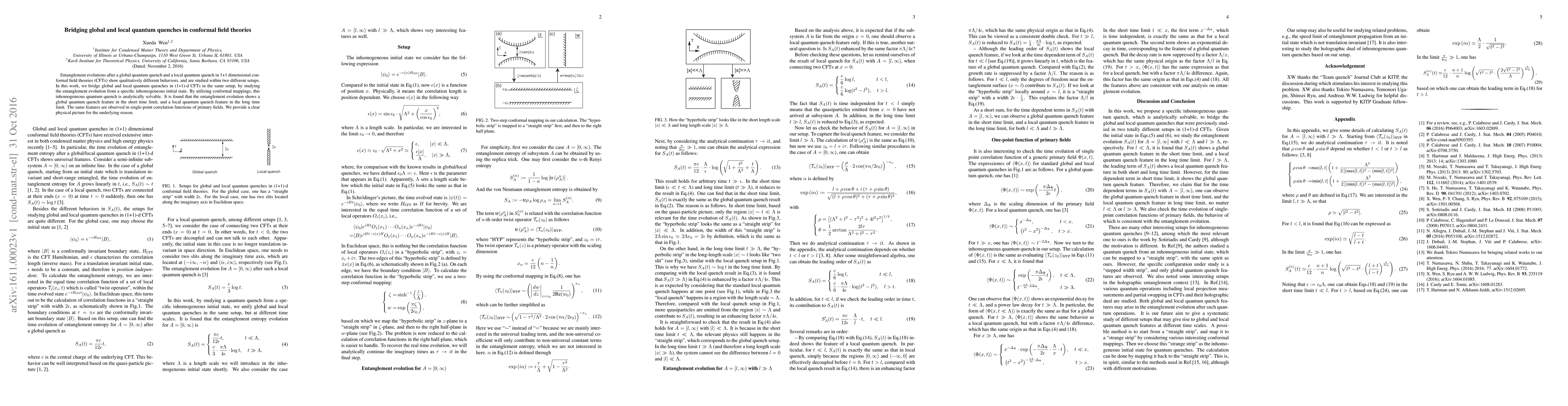 This paper bridges the study of global and local quantum quenches in 1+1 dimensional conformal field theories by analyzing entanglement evolution from an inhomogeneous initial state. The results show that entanglement evolves like a global quench initially but transitions to local quench behavior over time, a phenomenon also observed in primary field correlation functions.