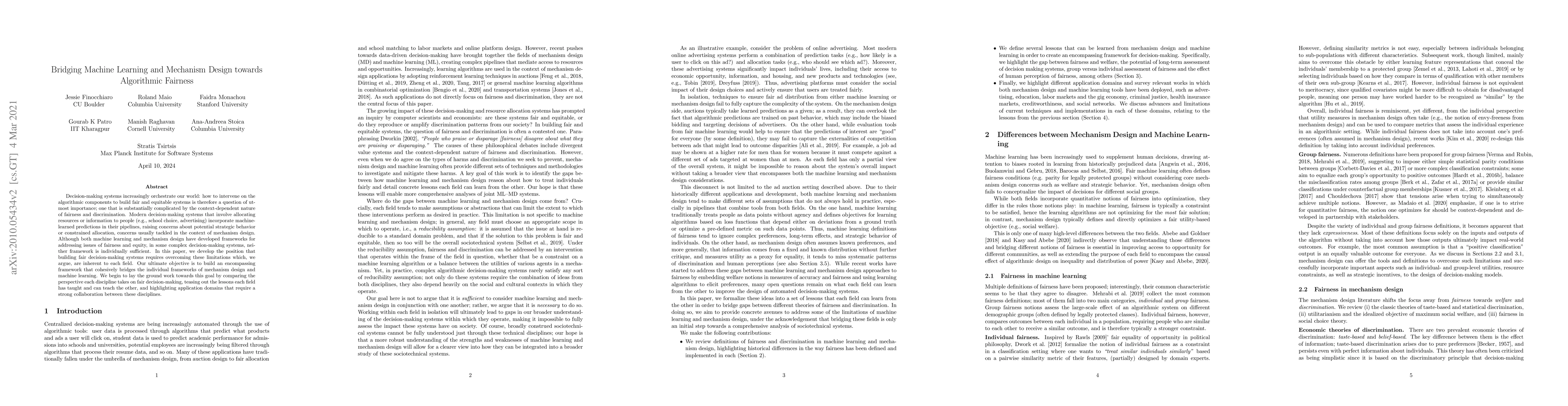 This paper argues for an integrated framework combining machine learning and mechanism design to address algorithmic fairness in complex decision-making systems. It highlights the limitations of each discipline alone and proposes a collaborative approach to build fair and equitable systems.