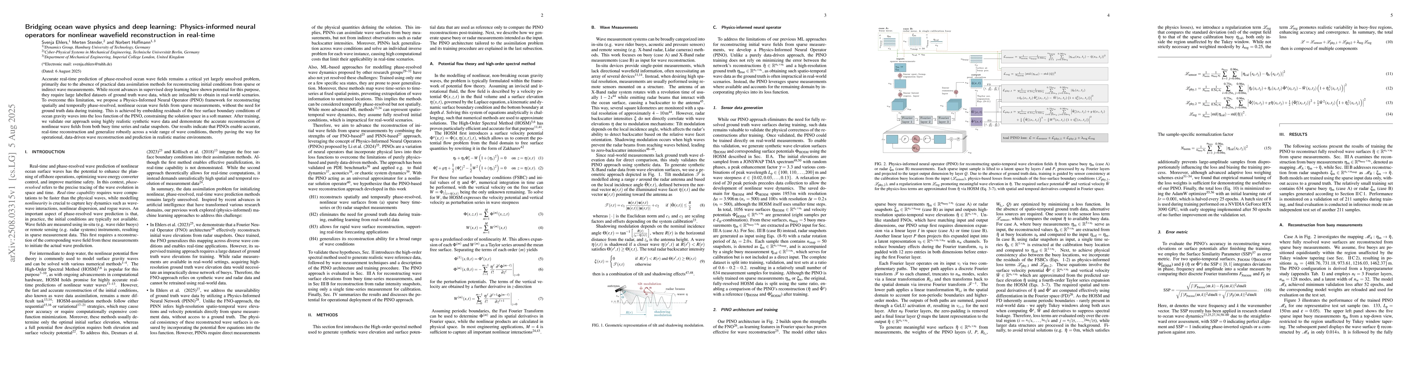 The research introduces a Physics-Informed Neural Operator (PINO) framework for reconstructing nonlinear ocean wave fields from sparse measurements, utilizing residuals of free surface boundary conditions in the loss function to constrain the solution space without ground truth data.