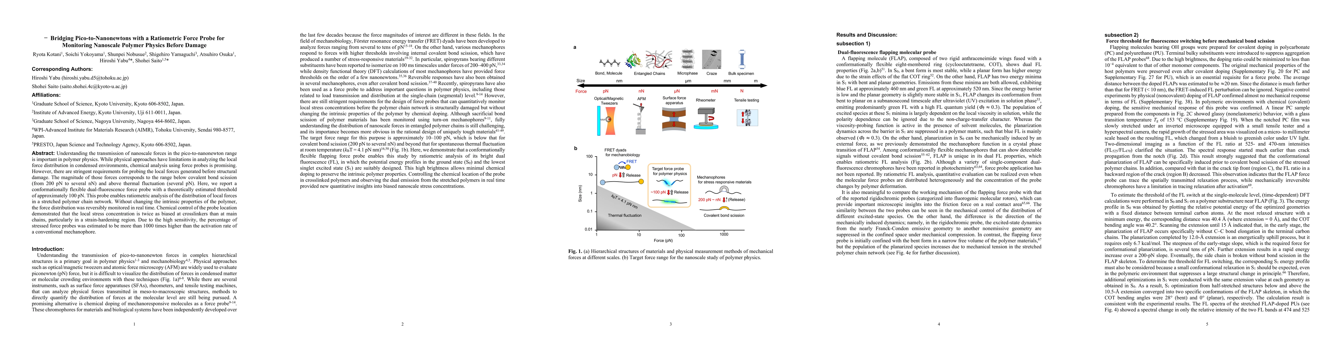 Understanding the transmission of nanoscale forces in the pico-to-nanonewton range is important in polymer physics. While physical approaches have limitations in analyzing the local force distribution in condensed environments, chemical analysis using force probes is promising. However, there are stringent requirements for probing the local forces generated before structural damage. The magnitude of those forces corresponds to the range below covalent bond scission (from 200 pN to several nN) and above thermal fluctuation (several pN). Here, we report a conformationally flexible dual-fluorescence force probe with a theoretically estimated threshold of approximately 100 pN. This probe enables ratiometric analysis of the distribution of local forces in a stretched polymer chain network. Without changing the intrinsic properties of the polymer, the force distribution was reversibly monitored in real time. Chemical control of the probe location demonstrated that the local stress concentration is twice as biased at crosslinkers than at main chains, particularly in a strain-hardening region. Due to the high sensitivity, the percentage of stressed force probes was estimated to be more than 1000 times higher than the activation rate of a conventional mechanophore.