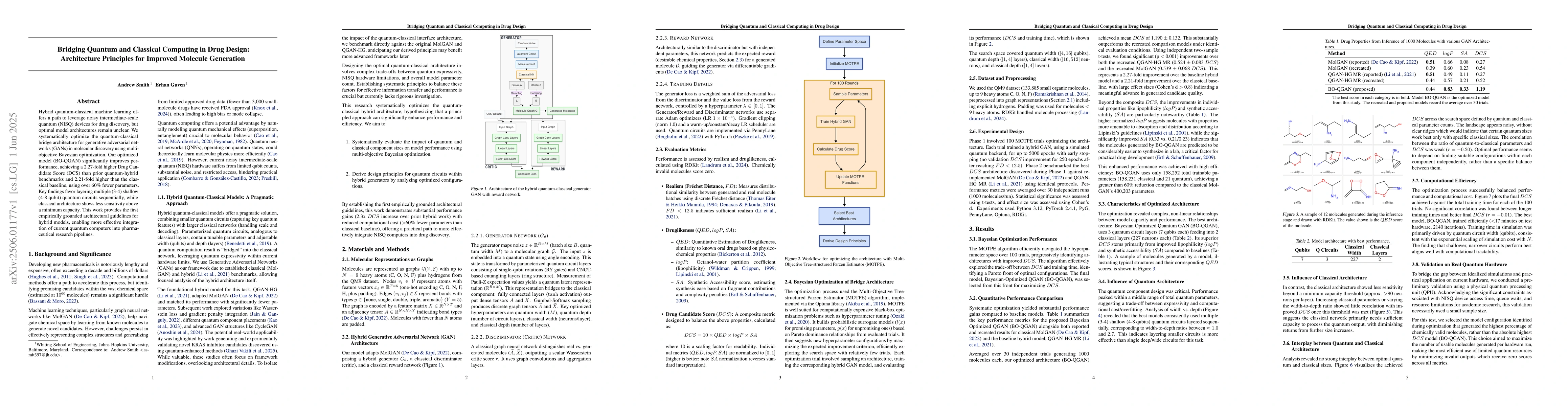 This work is novel in providing the first empirically grounded design principles for hybrid quantum-classical generative models, specifically for drug discovery, by optimizing the quantum-classical bridge architecture in GANs.