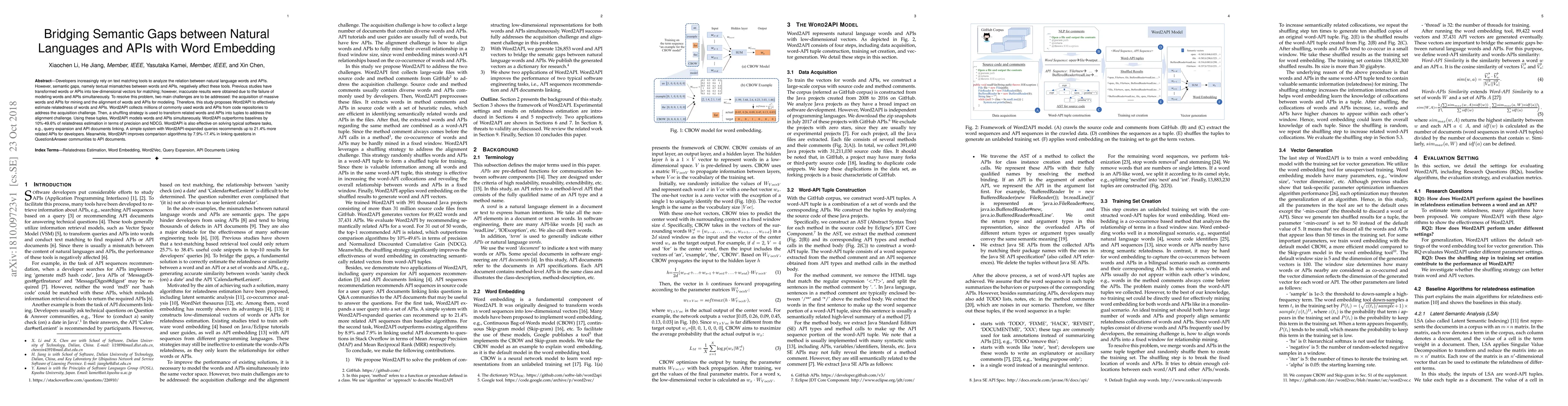 This study introduces Word2API to bridge semantic gaps between natural language and APIs by modeling words and APIs simultaneously, achieving significant improvements in relatedness estimation and software tasks like query expansion and API documentation linking. Word2API outperforms baselines by 10%-49.6% in relatedness estimation and enhances question-answering systems by 7.9%-17.4%.