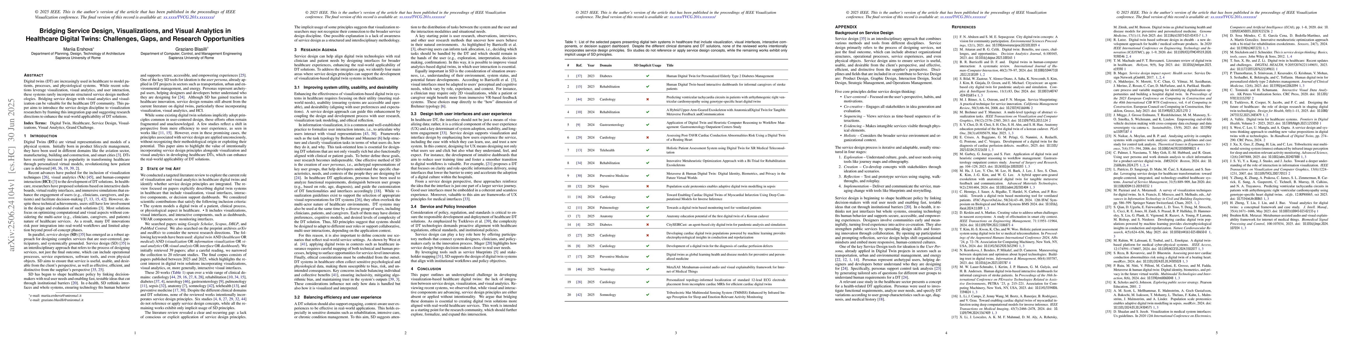 This paper highlights a gap in healthcare digital twin (DT) systems, which often neglect structured service design methodologies despite using visualizations and visual analytics. It calls for integrating service design with these tools to improve DT applicability in real-world healthcare, proposing research directions for this bridge.