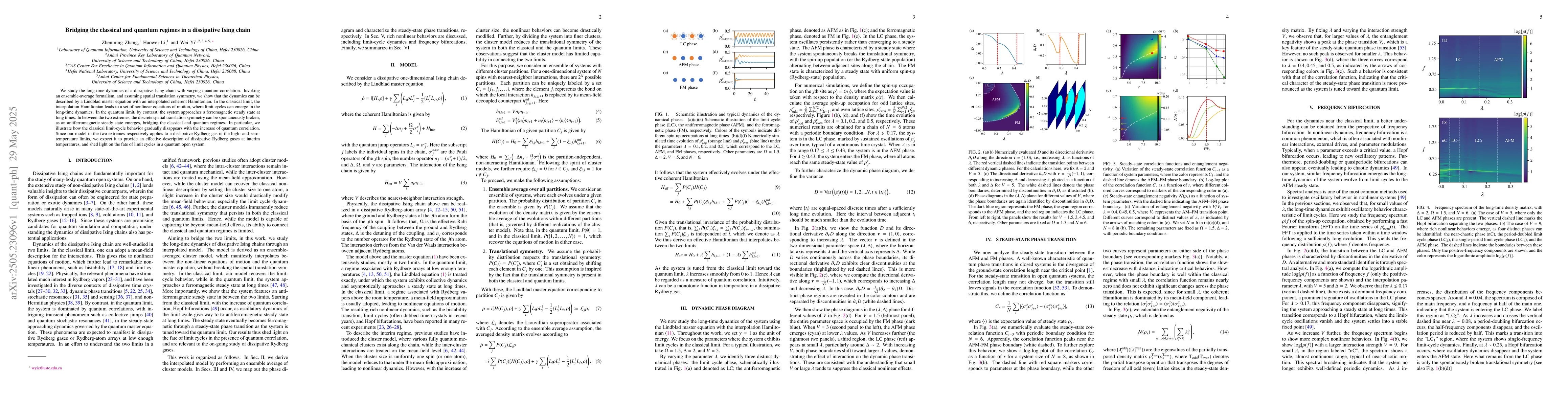 A study on a dissipative Ising chain reveals how it bridges classical and quantum regimes, exhibiting an antiferromagnetic steady state that emerges between extremes, and gradually losing limit cycle behavior with increasing quantum correlation.