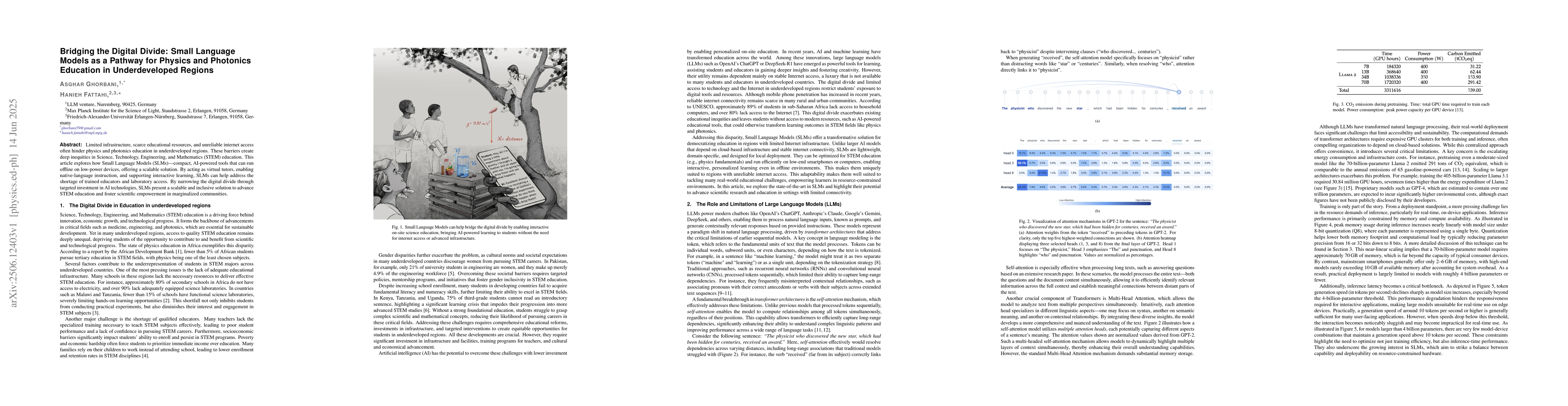 This paper proposes Small Language Models (SLMs) as a solution to bridge the digital divide in physics and photonics education in underdeveloped regions. SLMs, being compact AI tools usable offline on low-power devices, can act as virtual tutors, offer native-language instruction, and support interactive learning, addressing the shortage of educators and lab access.