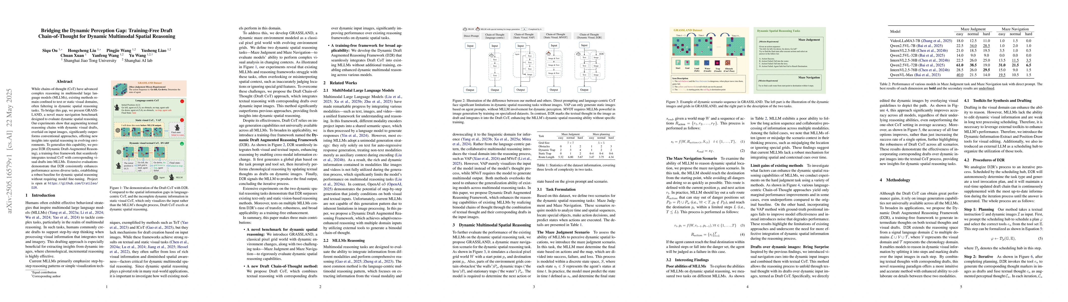 The research introduces GRASSLAND, a maze navigation benchmark for dynamic spatial reasoning, and proposes D2R, a training-free framework that combines textual chains-of-thought with dynamic visual drafts for multimodal large language models.