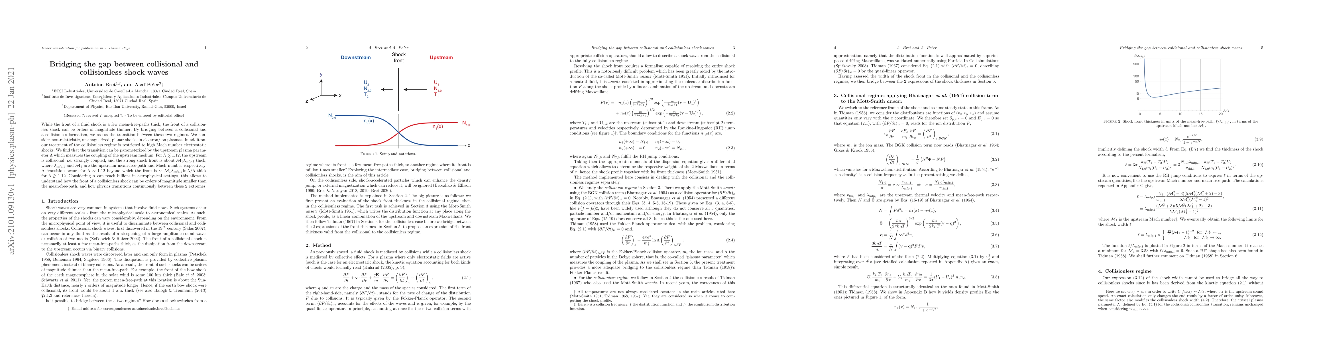While the front of a fluid shock is a few mean-free-paths thick, the front of a collisionless shock can be orders of magnitude thinner. By bridging between a collisional and a collisionless formalism, we assess the transition between these two regimes. We consider non-relativistic, un-magnetized, planar shocks in electron/ion plasmas. In addition, our treatment of the collisionless regime is restricted to high Mach number electrostatic shocks. We find that the transition can be parameterized by the upstream plasma parameter $\Lambda$ which measures the coupling of the upstream medium. For $\Lambda \lesssim 1.12$, the upstream is collisional, i.e. strongly coupled, and the strong shock front is about $\mathcal{M}_1 \lambda_{\mathrm{mfp},1}$ thick, where $\lambda_{\mathrm{mfp},1}$ and $\mathcal{M}_1 $ are the upstream mean-free-path and Mach number respectively. A transition occurs for $\Lambda \sim 1.12$ beyond which the front is $\sim \mathcal{M}_1\lambda_{\mathrm{mfp},1}\ln \Lambda/\Lambda$ thick for $\Lambda\gtrsim 1.12$. Considering $\Lambda$ can reach billions in astrophysical settings, this allows to understand how the front of a collisionless shock can be orders of magnitude smaller than the mean-free-path, and how physics transitions continuously between these 2 extremes.