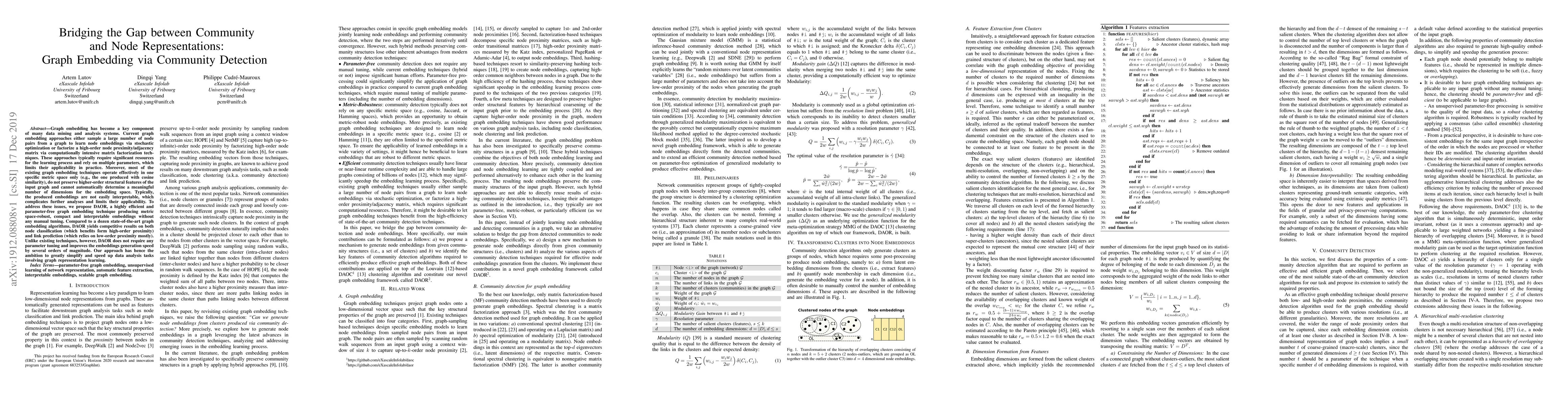 The paper proposes DAOR, a parameter-free graph embedding technique that efficiently generates robust, compact, and interpretable embeddings without manual tuning. Unlike existing methods, DAOR significantly improves generation speed and achieves competitive results in node classification and link prediction.