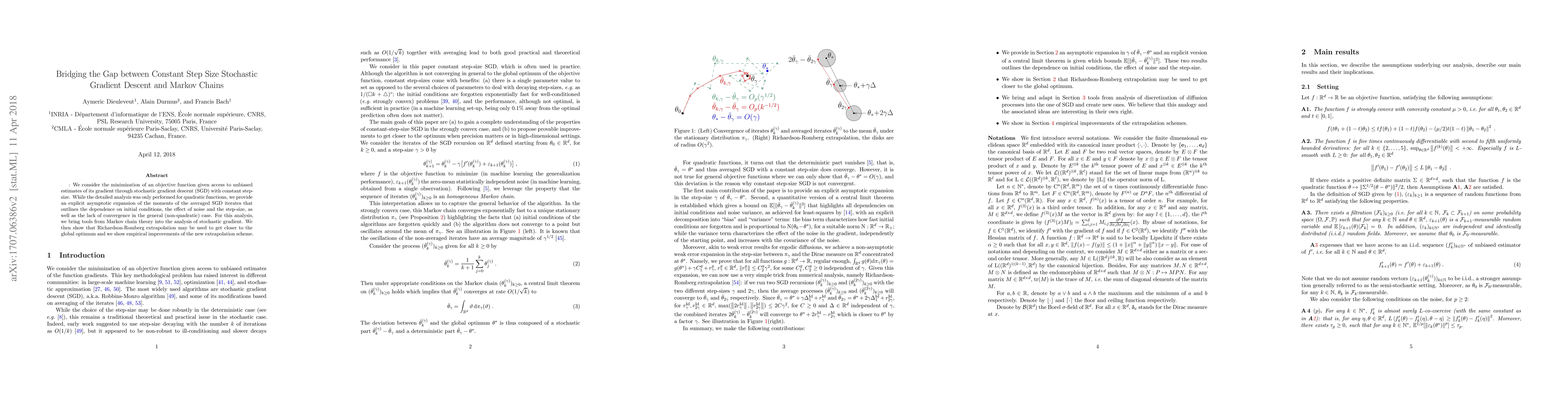 This paper analyzes the asymptotic behavior of constant step-size stochastic gradient descent (SGD) for minimizing objective functions, providing an explicit expansion of its moments. It bridges SGD with Markov chain theory to understand convergence issues and proposes Richardson-Romberg extrapolation for improved convergence, demonstrating empirical gains.