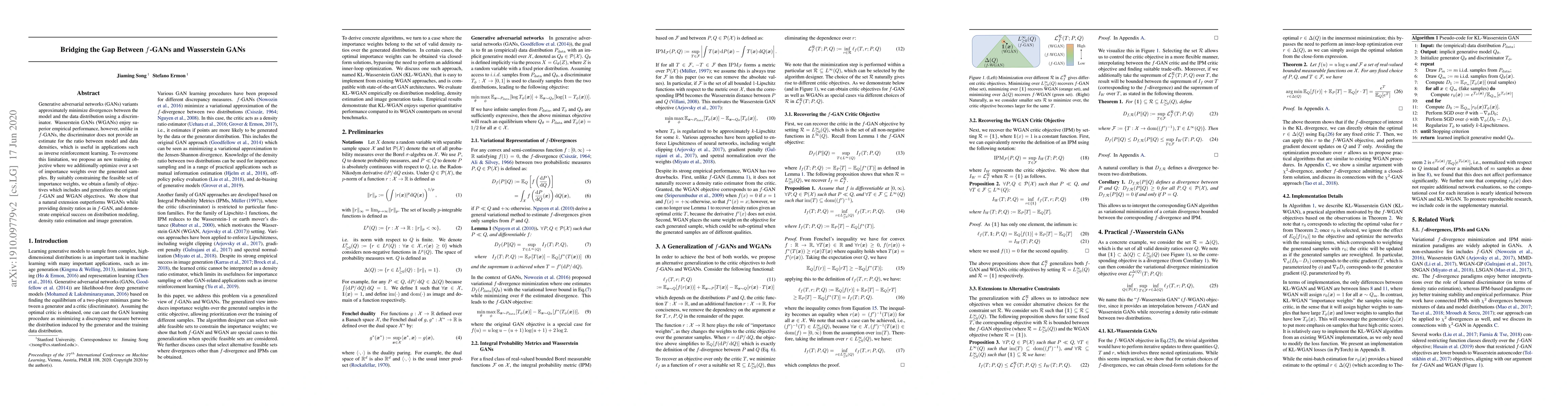 This paper bridges $f$-GANs and Wasserstein GANs by proposing a novel KL-Wasserstein GAN (KL-WGAN) that generalizes critic objectives of both. Empirical results show KL-WGAN achieves state-of-the-art FID scores on CIFAR10 image generation.