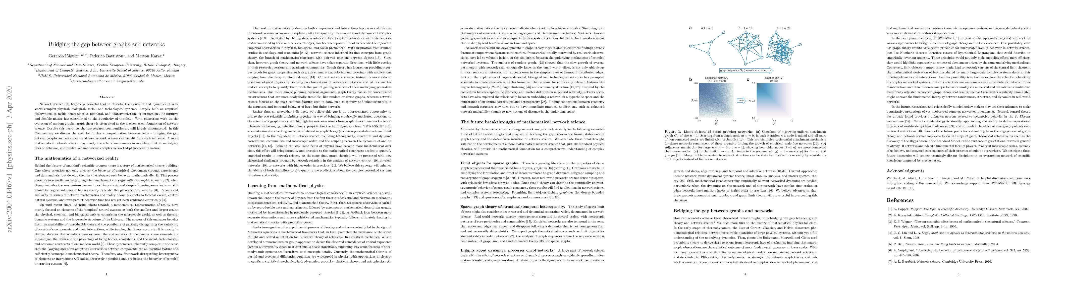 Network science has become a powerful tool to describe the structure and dynamics of real-world complex physical, biological, social, and technological systems. Largely built on empirical observations to tackle heterogeneous, temporal, and adaptive patterns of interactions, its intuitive and flexible nature has contributed to the popularity of the field. With pioneering work on the evolution of random graphs, graph theory is often cited as the mathematical foundation of network science. Despite this narrative, the two research communities are still largely disconnected. In this Commentary we discuss the need for further cross-pollination between fields -- bridging the gap between graphs and networks -- and how network science can benefit from such influence. A more mathematical network science may clarify the role of randomness in modeling, hint at underlying laws of behavior, and predict yet unobserved complex networked phenomena in nature.