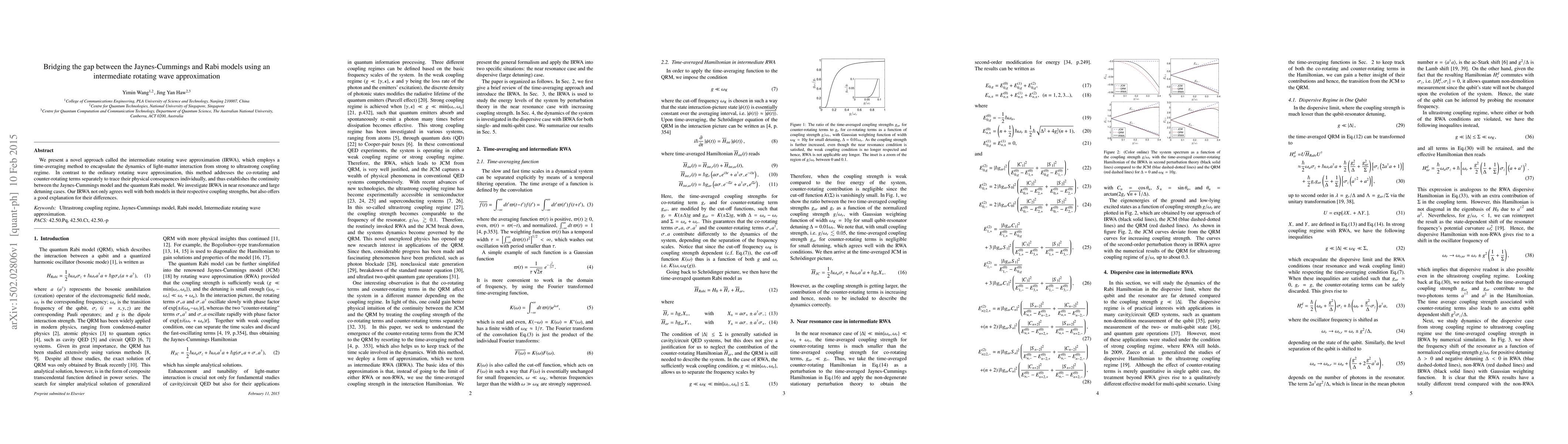This paper introduces the intermediate rotating wave approximation (IRWA) to bridge the dynamics between the Jaynes-Cummings and Rabi models in light-matter interaction, addressing co-rotating and counter-rotating terms separately. The IRWA method provides continuity between these models and explains their differences effectively.