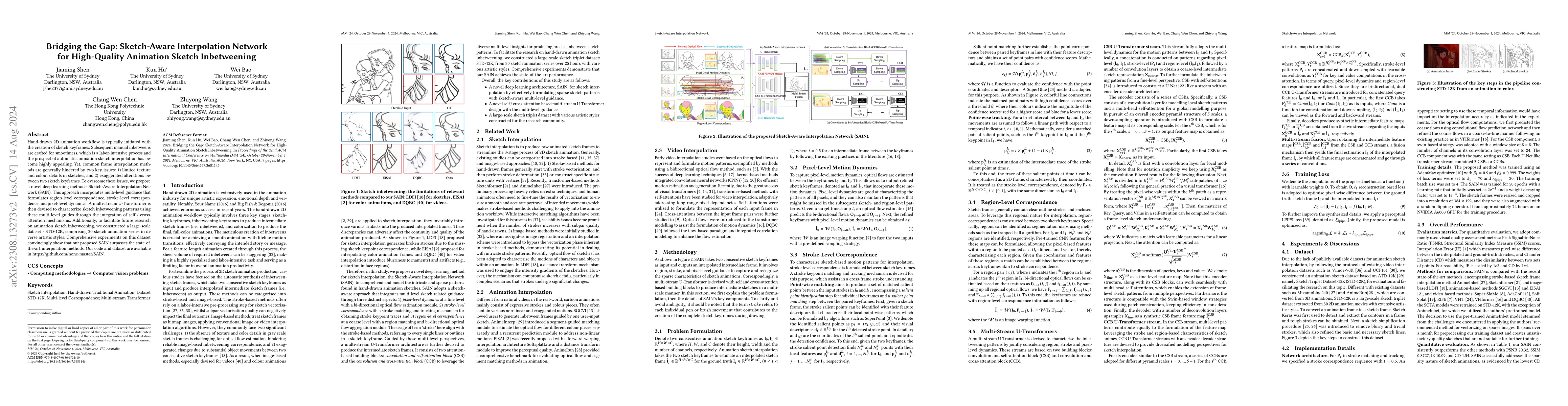 The paper proposes a Fine-to-Coarse Sketch Interpolation Network (FC-SIN) to automate the labor-intensive process of creating intermediate frames in 2D animation. The FC-SIN method uses multi-level guidance and a multi-stream U-Transformer to address the challenges of limited sketch details and exaggerated changes between keyframes, outperforming existing methods on a newly constructed dataset, STD-12K.