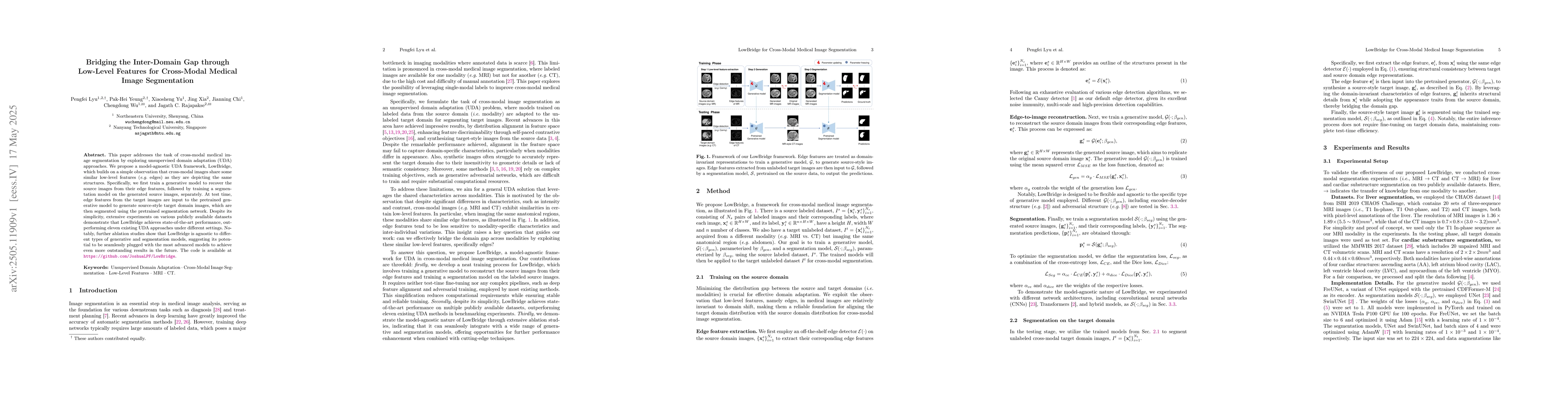 A new approach called LowBridge achieves state-of-the-art performance in cross-modal medical image segmentation using low-level features, outperforming 11 existing methods. It uses a simple model-agnostic framework to generate source-style images from target images.