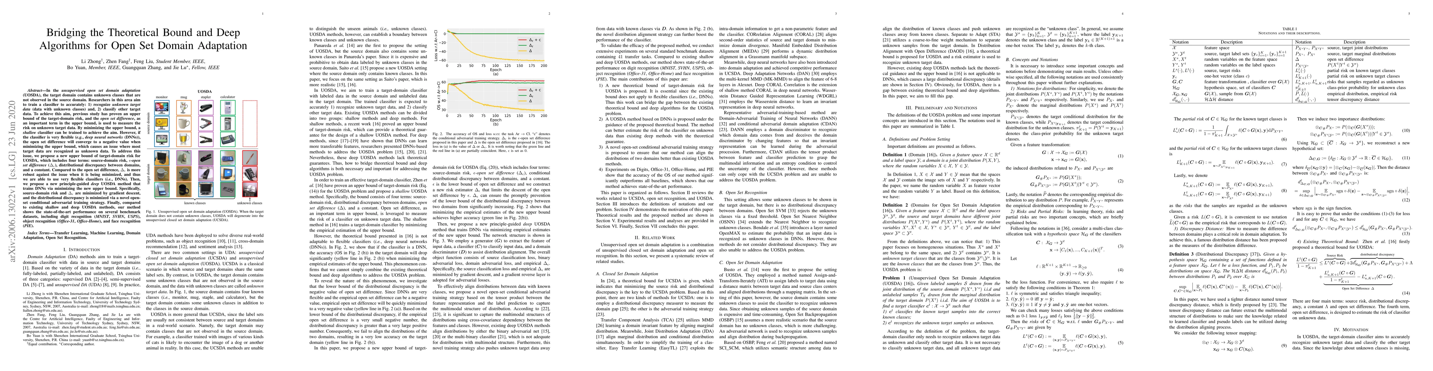 In the unsupervised open set domain adaptation (UOSDA), the target domain contains unknown classes that are not observed in the source domain. Researchers in this area aim to train a classifier to accurately: 1) recognize unknown target data (data with unknown classes) and, 2) classify other target data. To achieve this aim, a previous study has proven an upper bound of the target-domain risk, and the open set difference, as an important term in the upper bound, is used to measure the risk on unknown target data. By minimizing the upper bound, a shallow classifier can be trained to achieve the aim. However, if the classifier is very flexible (e.g., deep neural networks (DNNs)), the open set difference will converge to a negative value when minimizing the upper bound, which causes an issue where most target data are recognized as unknown data. To address this issue, we propose a new upper bound of target-domain risk for UOSDA, which includes four terms: source-domain risk, $\epsilon$-open set difference ($\Delta_\epsilon$), a distributional discrepancy between domains, and a constant. Compared to the open set difference, $\Delta_\epsilon$ is more robust against the issue when it is being minimized, and thus we are able to use very flexible classifiers (i.e., DNNs). Then, we propose a new principle-guided deep UOSDA method that trains DNNs via minimizing the new upper bound. Specifically, source-domain risk and $\Delta_\epsilon$ are minimized by gradient descent, and the distributional discrepancy is minimized via a novel open-set conditional adversarial training strategy. Finally, compared to existing shallow and deep UOSDA methods, our method shows the state-of-the-art performance on several benchmark datasets, including digit recognition (MNIST, SVHN, USPS), object recognition (Office-31, Office-Home), and face recognition (PIE).