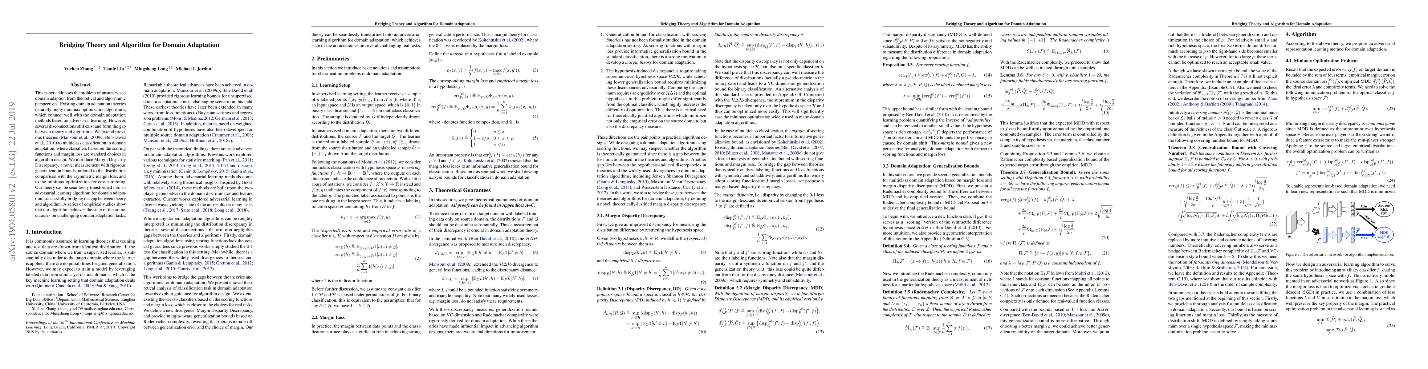 This paper bridges theoretical and algorithmic gaps in unsupervised domain adaptation, extending previous theories to multiclass classification and introducing a new measurement, Margin Disparity Discrepancy, to improve training. The proposed algorithm achieves state-of-the-art accuracies in empirical studies.