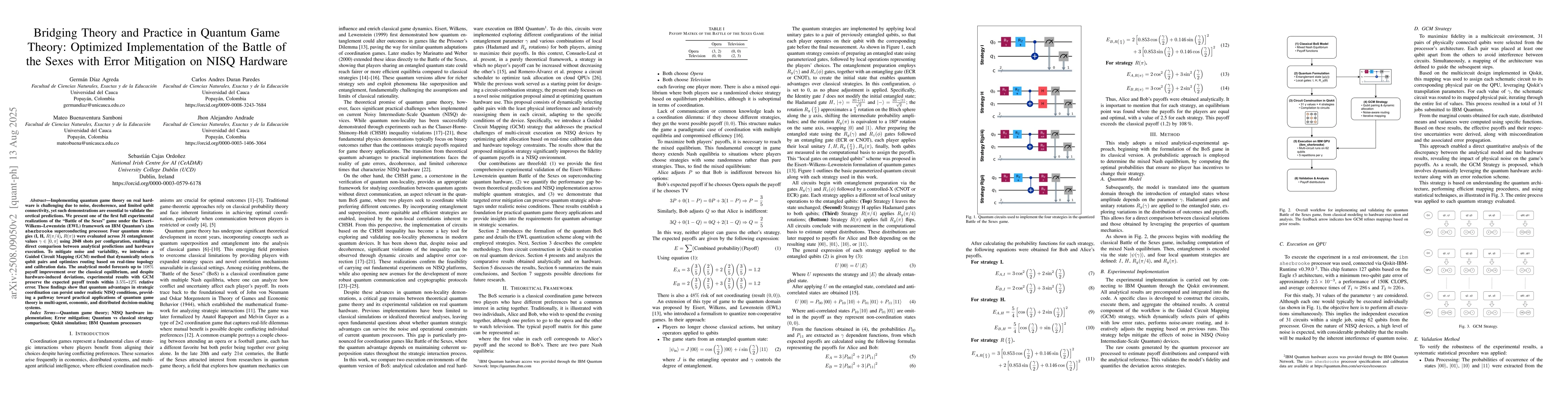 Implementing quantum game theory on real hardware is challenging due to noise, decoherence, and limited qubit connectivity, yet such demonstrations are essential to validate theoretical predictions. We present one of the first full experimental realizations of the Battle of the Sexes game under the Eisert-Wilkens-Lewenstein (EWL) framework on IBM Quantum's ibm sherbrooke superconducting processor. Four quantum strategies (I, H, $R(\pi/4)$, $R(\pi)$) were evaluated across 31 entanglement values $\gamma \in [0, \pi]$ using 2048 shots per configuration, enabling a direct comparison between analytical predictions and hardware execution. To mitigate noise and variability, we introduce a Guided Circuit Mapping (GCM) method that dynamically selects qubit pairs and optimizes routing based on real-time topology and calibration data. The analytical model forecasts up to $108\%$ payoff improvement over the classical equilibrium, and despite hardware-induced deviations, experimental results with GCM preserve the expected payoff trends within $3.5\%$-$12\%$ relative error. These findings show that quantum advantages in strategic coordination can persist under realistic NISQ conditions, providing a pathway toward practical applications of quantum game theory in multi-agent, economic, and distributed decision-making systems.