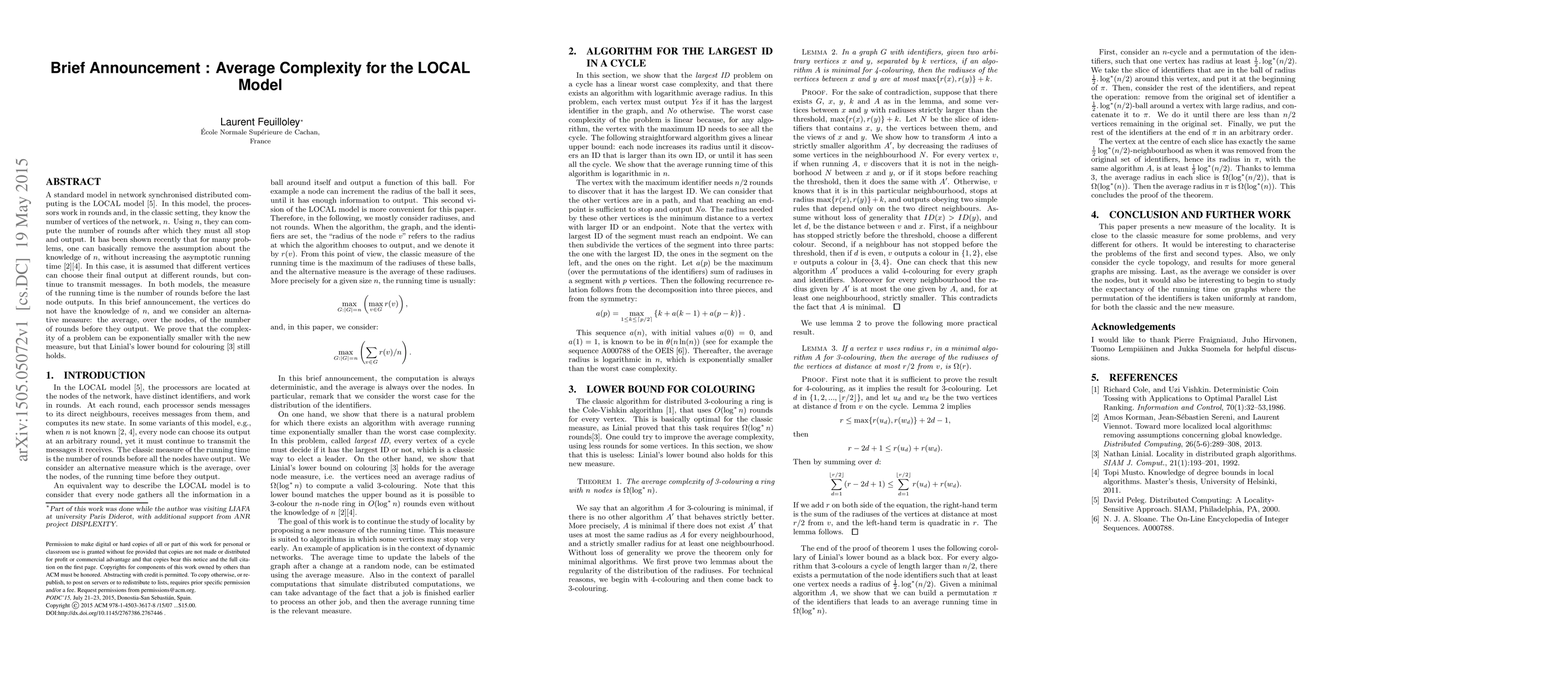 A standard model in network synchronised distributed computing is the LOCAL model. In this model, the processors work in rounds and, in the classic setting, they know the number of vertices of the network, $n$. Using $n$, they can compute the number of rounds after which they must all stop and output. It has been shown recently that for many problems, one can basically remove the assumption about the knowledge of $n$, without increasing the asymptotic running time. In this case, it is assumed that different vertices can choose their final output at different rounds, but continue to transmit messages. In both models, the measure of the running time is the number of rounds before the last node outputs. In this brief announcement, the vertices do not have the knowledge of $n$, and we consider an alternative measure: the average, over the nodes, of the number of rounds before they output. We prove that the complexity of a problem can be exponentially smaller with the new measure, but that Linial's lower bound for colouring still holds.